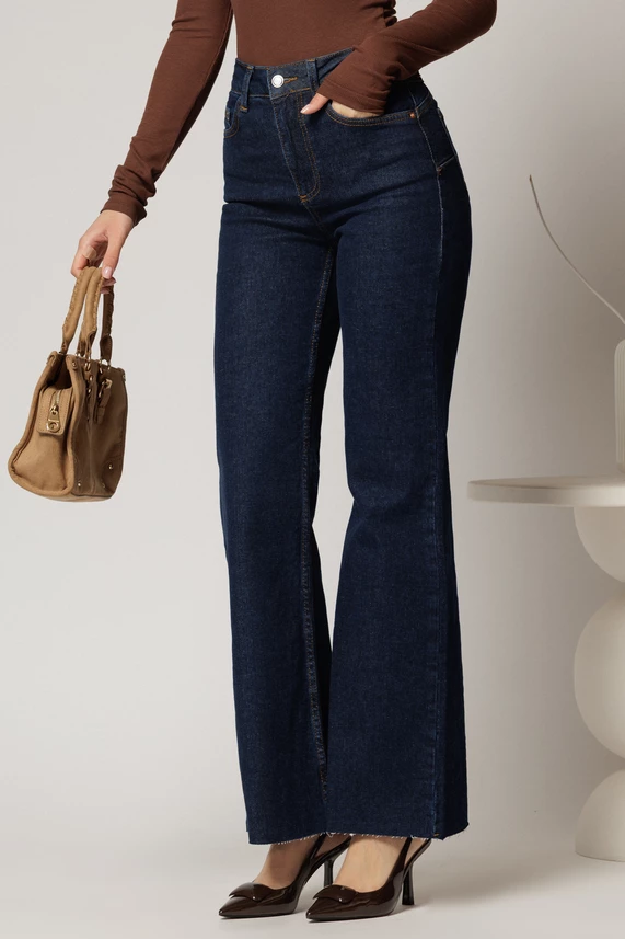 Alege o pereche de blugi bleumarin, cu un croi evazat ce evidentiaza tinutele tale de zi cu zi.