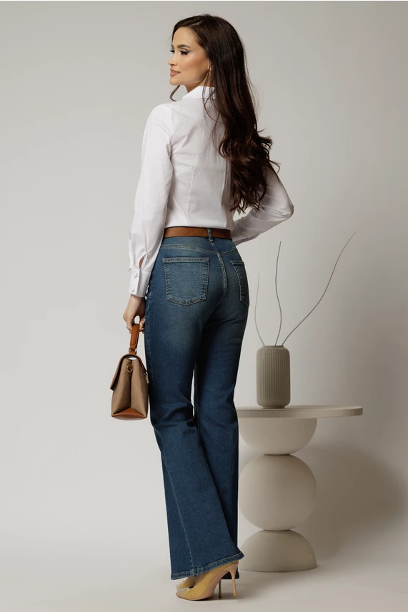 Blugi dama bleumarin evazati din denim cu talie inalta