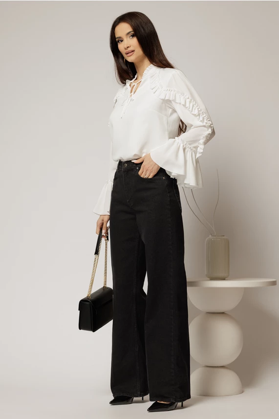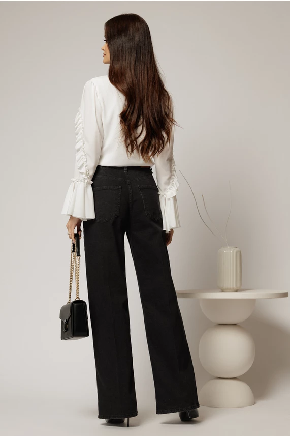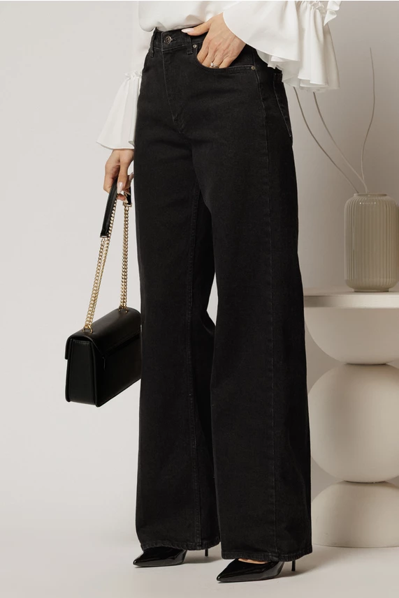 In tinutele tale de zi cu zi integreaza o pereche de blugi negri evazati cu talie inalta, in care sa te simti confortabil.