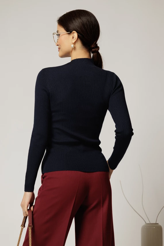 Este o maleta clasica de culoare bleumarin, cu croi mulat si guler usor ridicat.