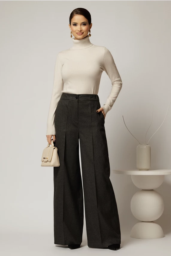 Maleta simpla casual. Are guler inalt intors, maneci lungi si croi drept.