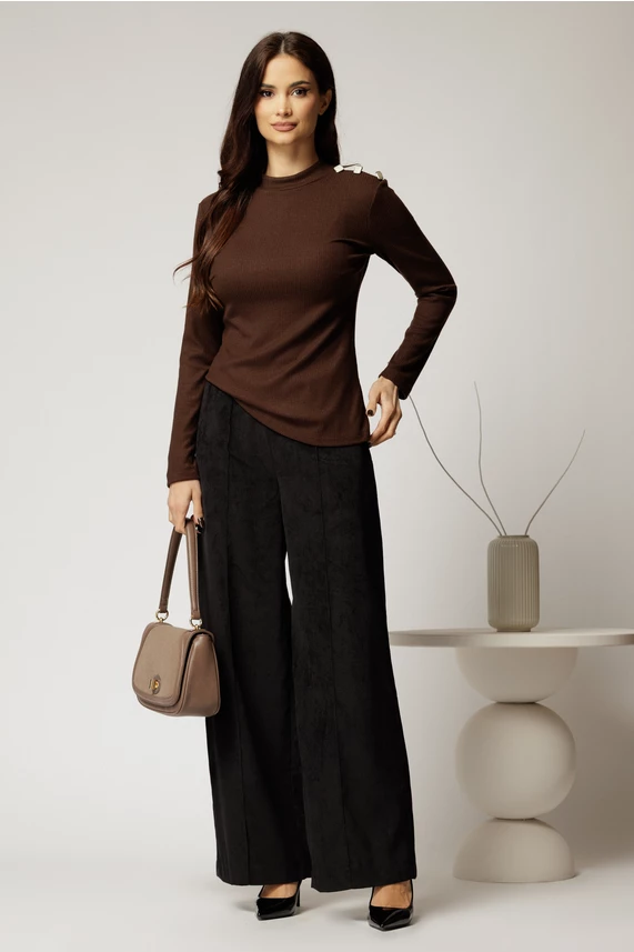 Maleta DY Fashion din tricot maro cu guler si nasturi decorativi