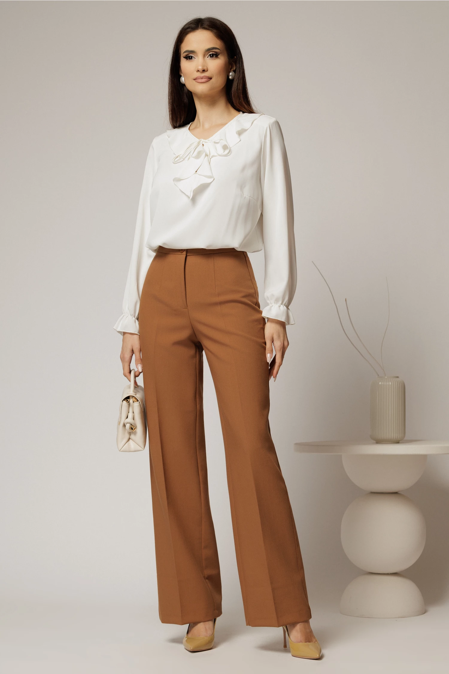 Este o bluza eleganta alba, cu volanase si snur la decolteu, usor de integrat in tinutele tale.