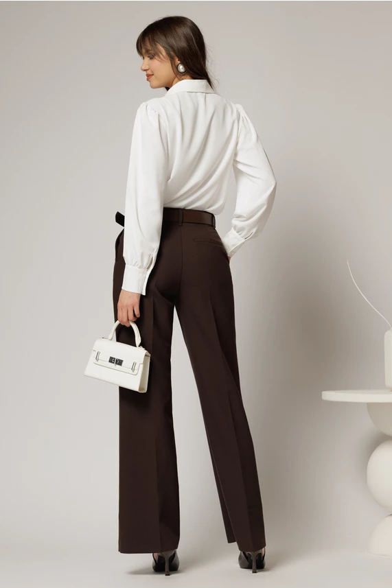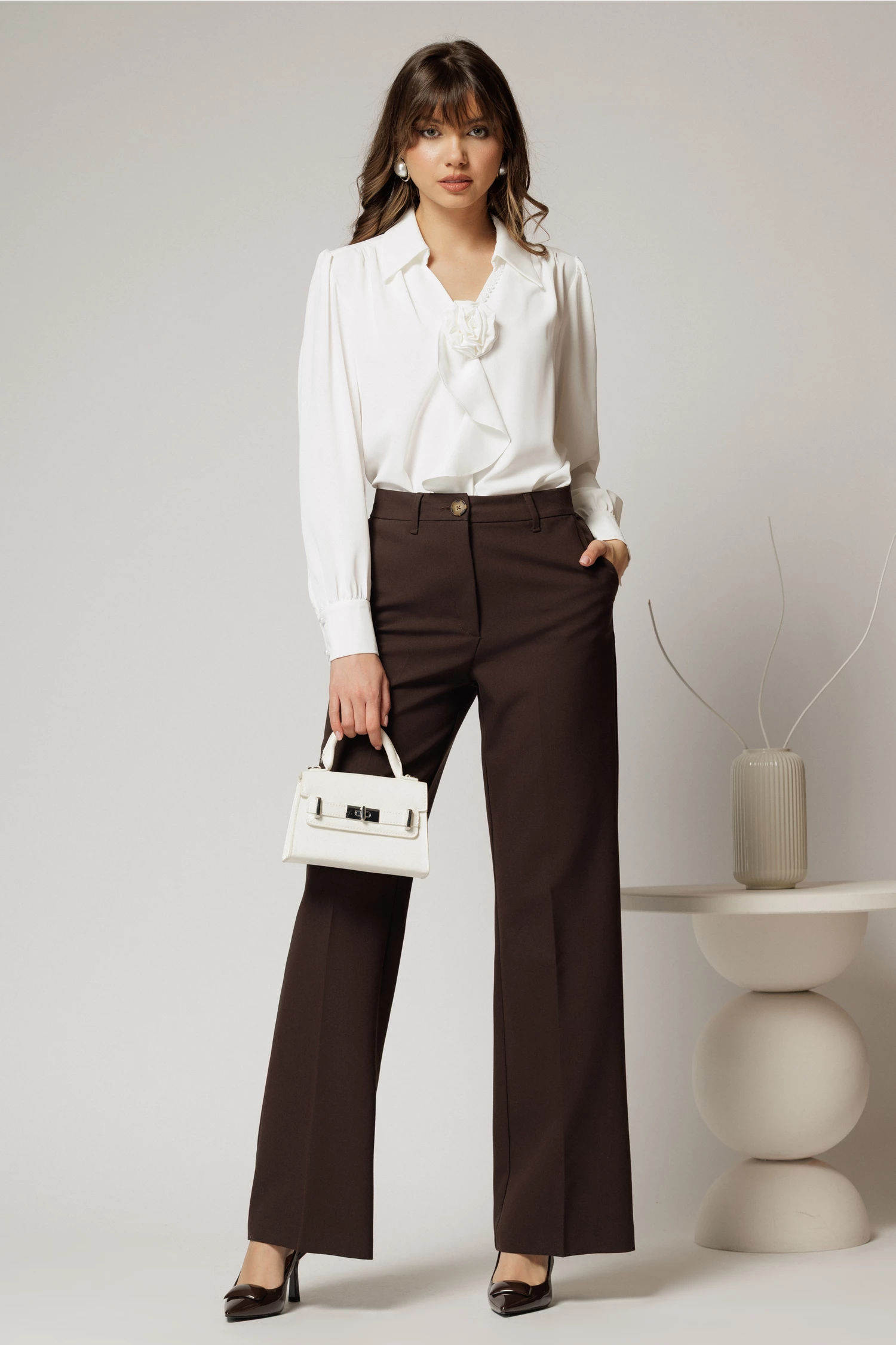 Este o bluza eleganta alba din voal, cu decolteul in V accesorizat cu perlute si detaliu floral. Bluza are manecile lungi si un croi lejer.