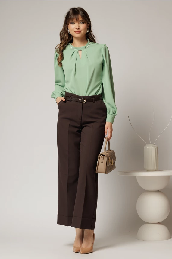 Bluza DY Fashion verde mint cu decupaj si perle la decolteu