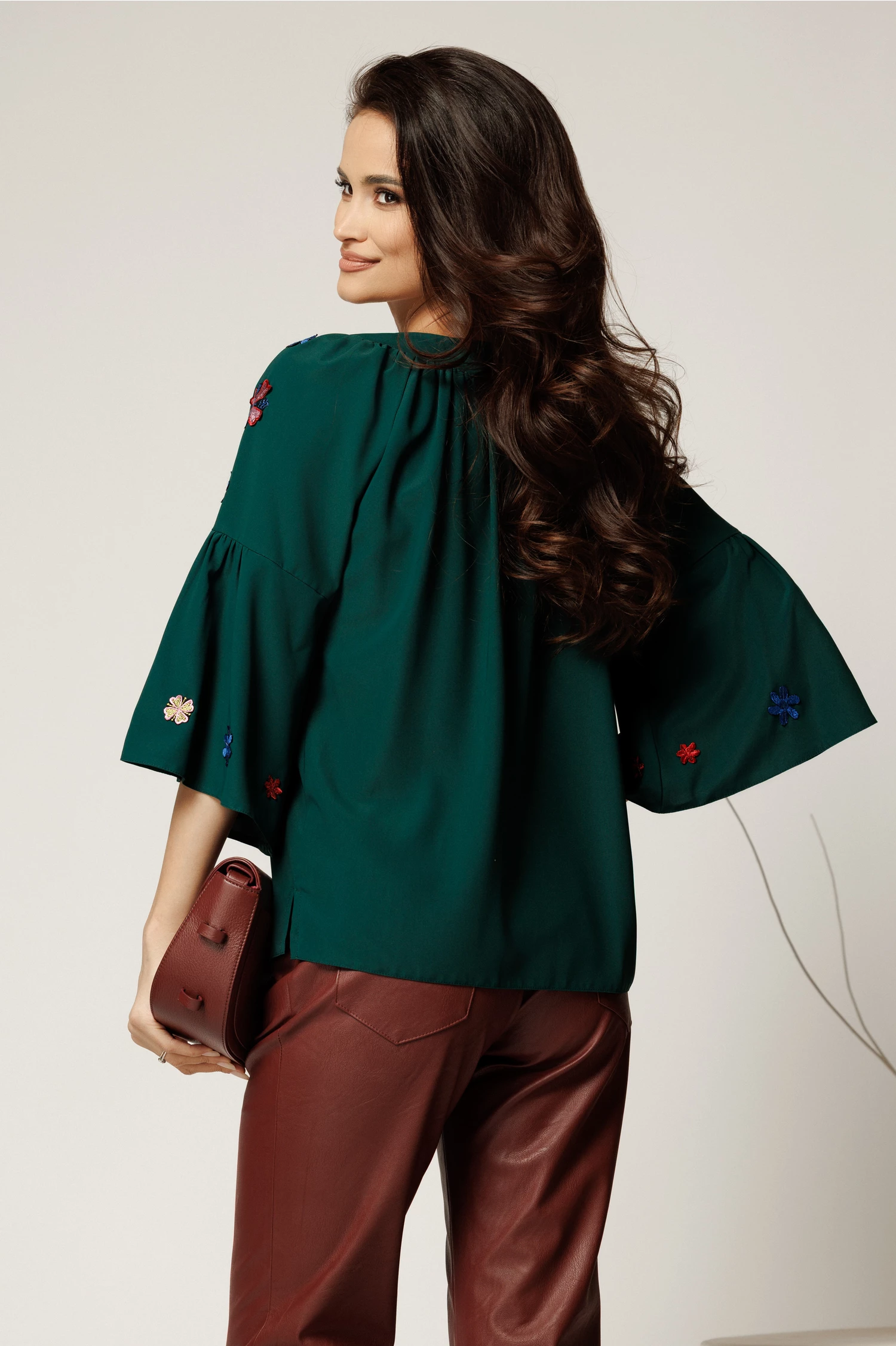 Bluza eleganta din viscoza verde cu broderie traditionala