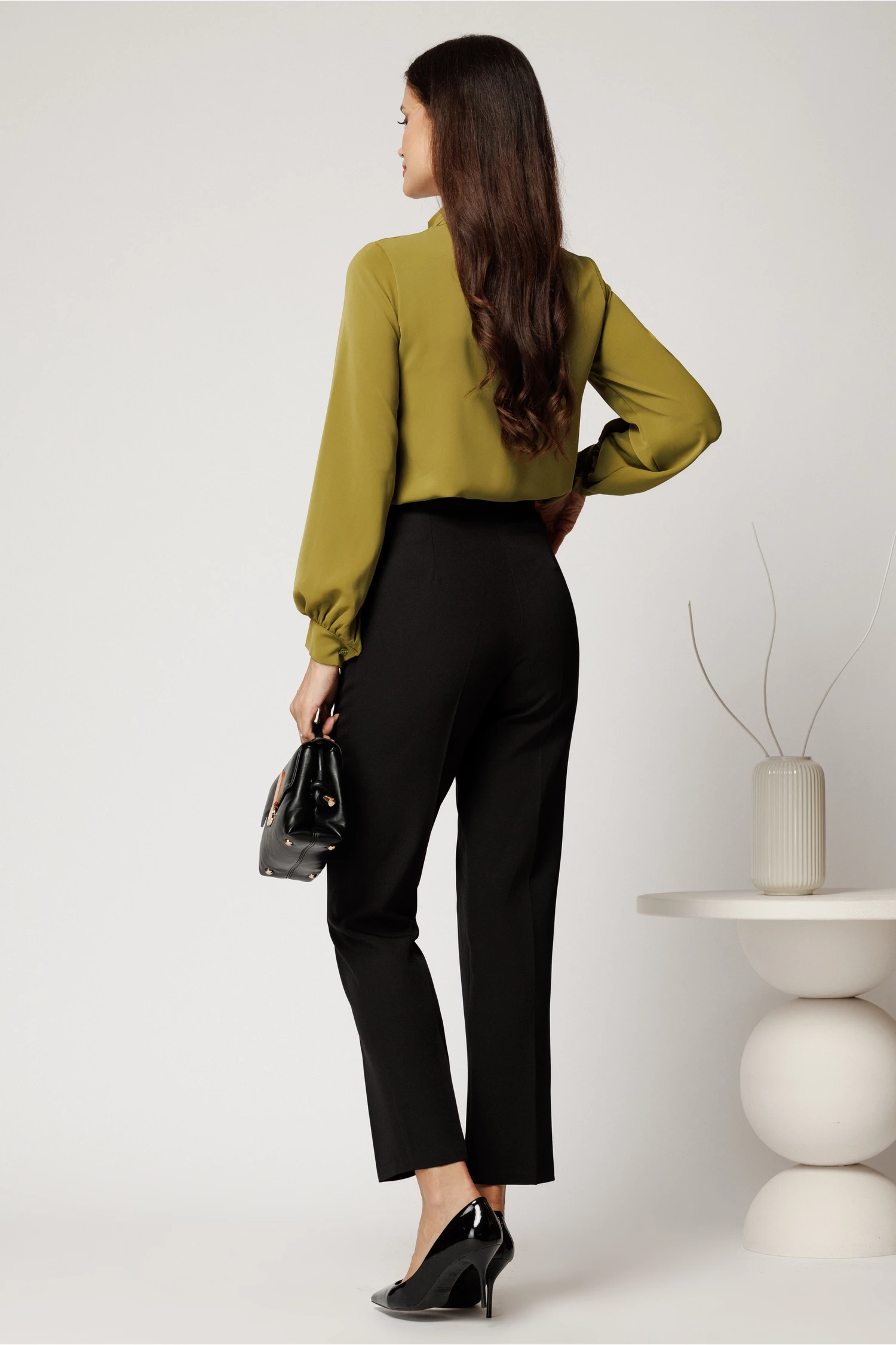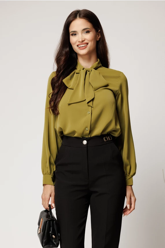 Camasa verde lime lejera din triplu voal cu guler tip esarfa