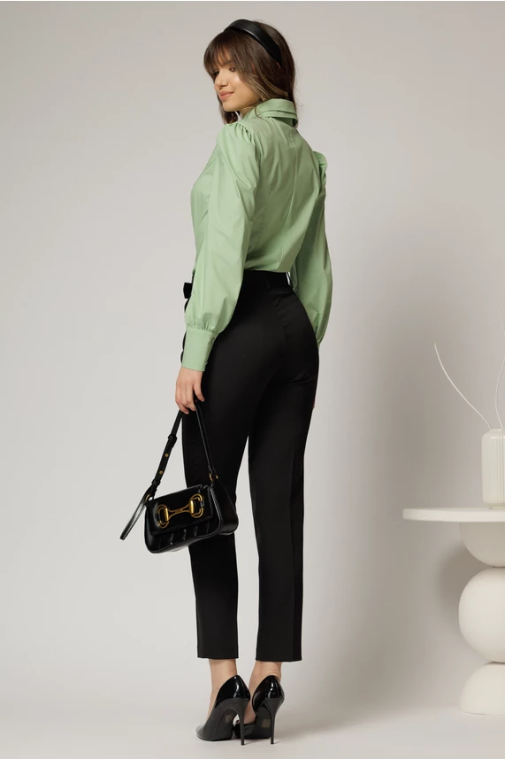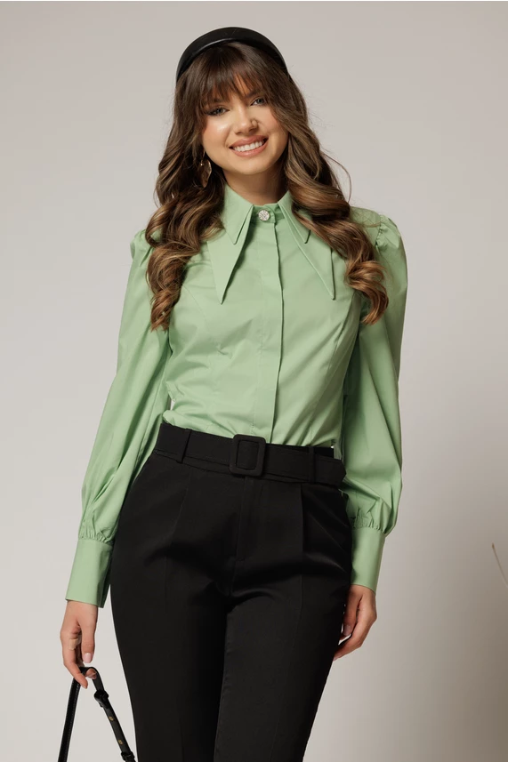 Este o camasa office din poplin de culoare vernil cu guler dublu. Camasa are maneci lungi, croi cambrat si nasture pretios la guler.