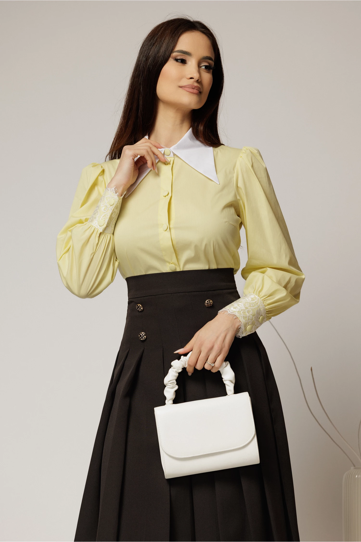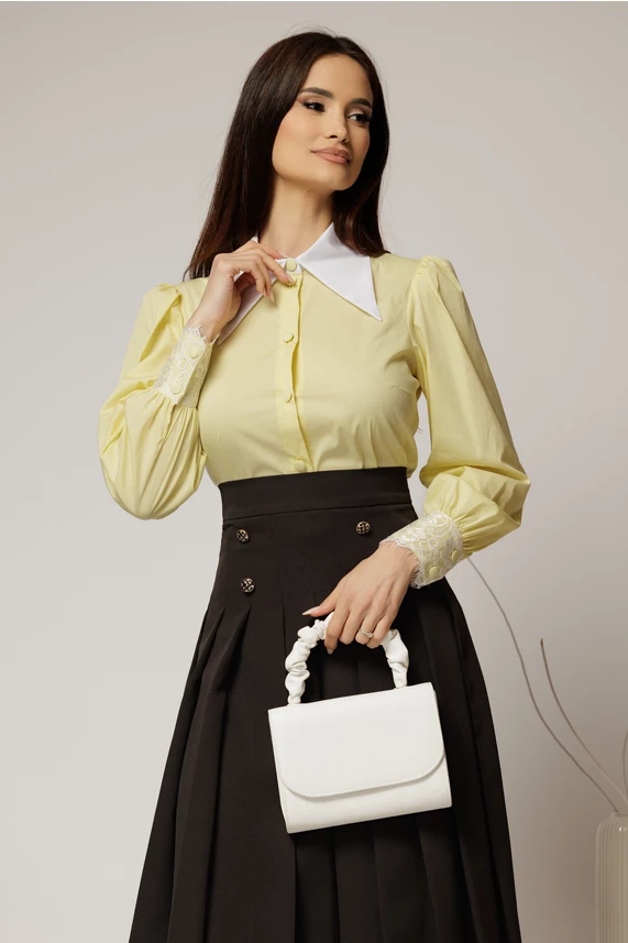 Camasa galbena din poplin cu guler ascutit si mansete cu dantela