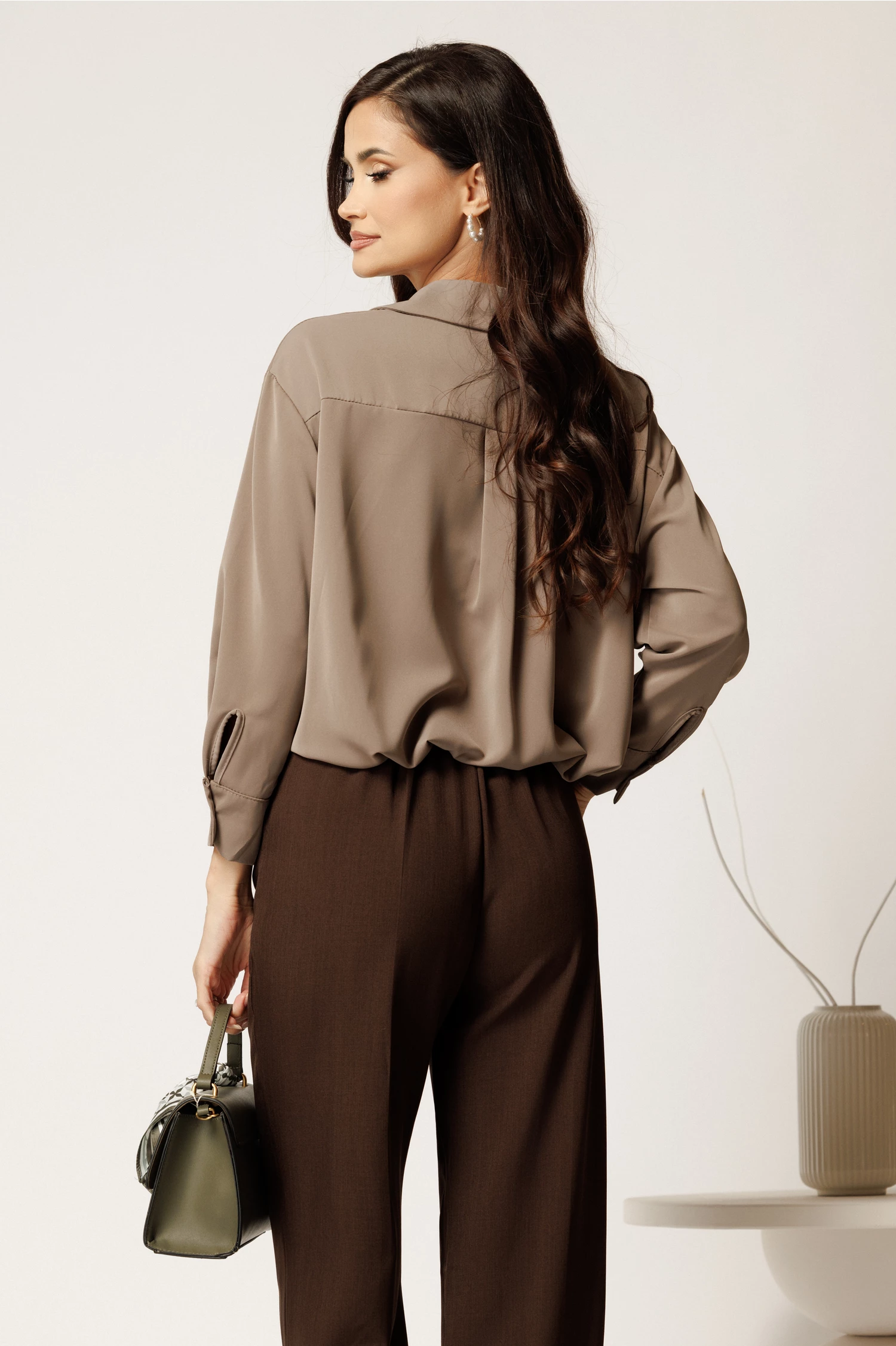 Camasa clasica din voal satinat. Are guler ascutit, maneci lungi si croi drept.