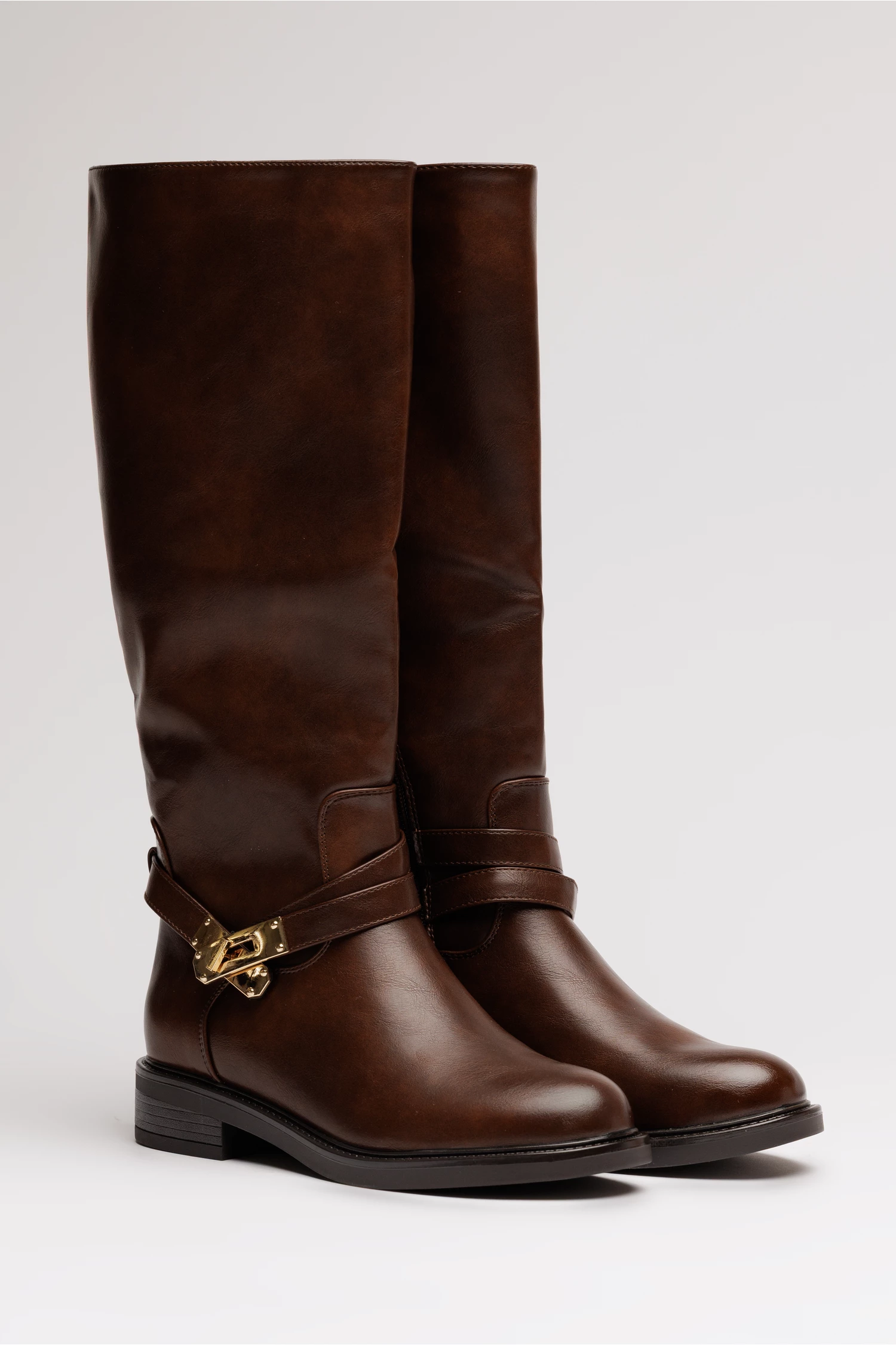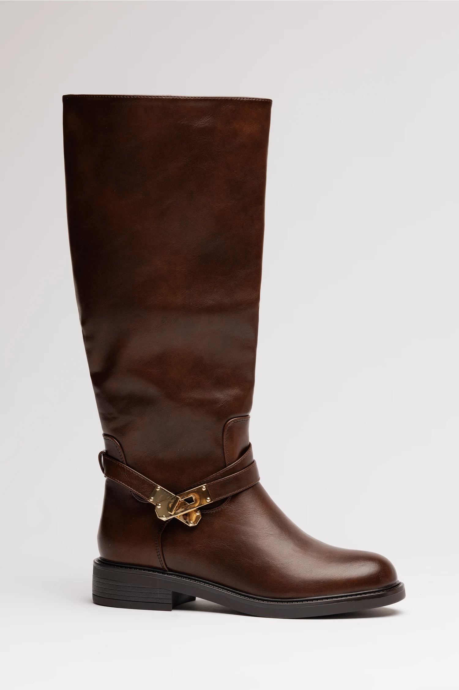 Cizmele au un design modern , cu un aspect masiv, potrivit pentru sezonul rece. Au talpa groasa, catarama metalica aurie si se inchid cu fermoar lateral .