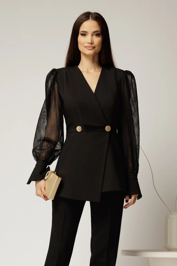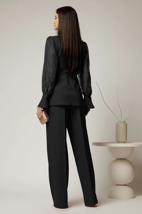 Compleu negru sacou cu pantalon cu maneci din dantela