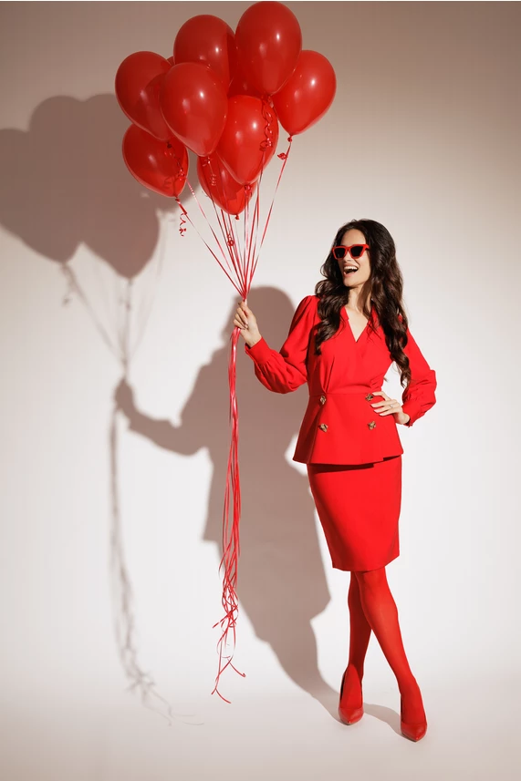 Compleu rosu din stofa cu sacou si fusta