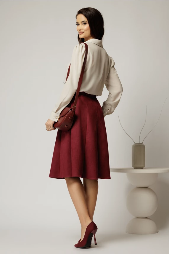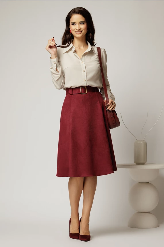 Fusta DY Fashion bordo clos din piele intoarsa si curea in talie