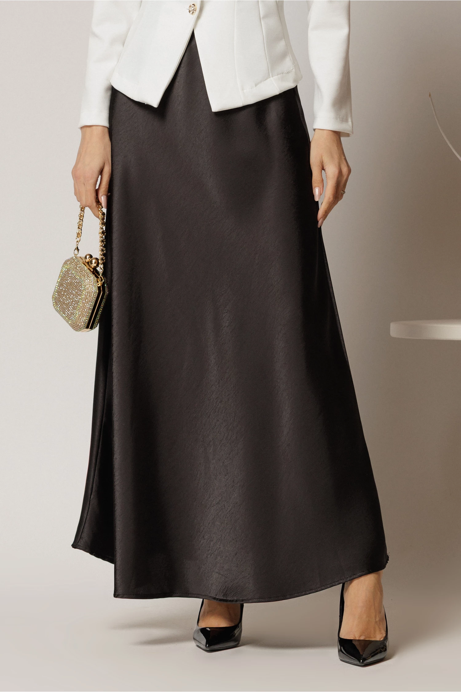 Fusta lunga neagra din satin