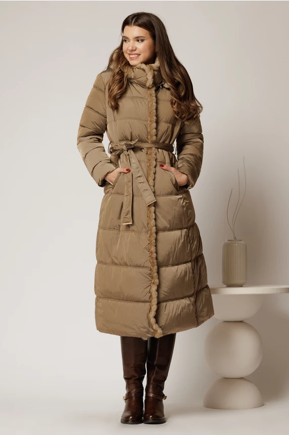Simte-te confortabil in aceasta iarna intr-o geaca lunga maro, cu detalii din blanita, gluga detasabila si talia accentuata de un cordon.