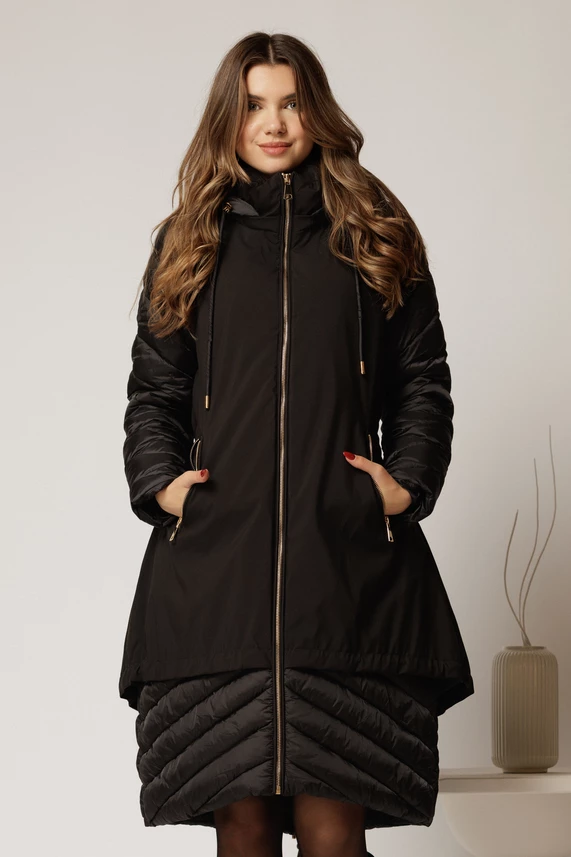 Geaca dama neagra croi lejer cu fermoar metalic auriu