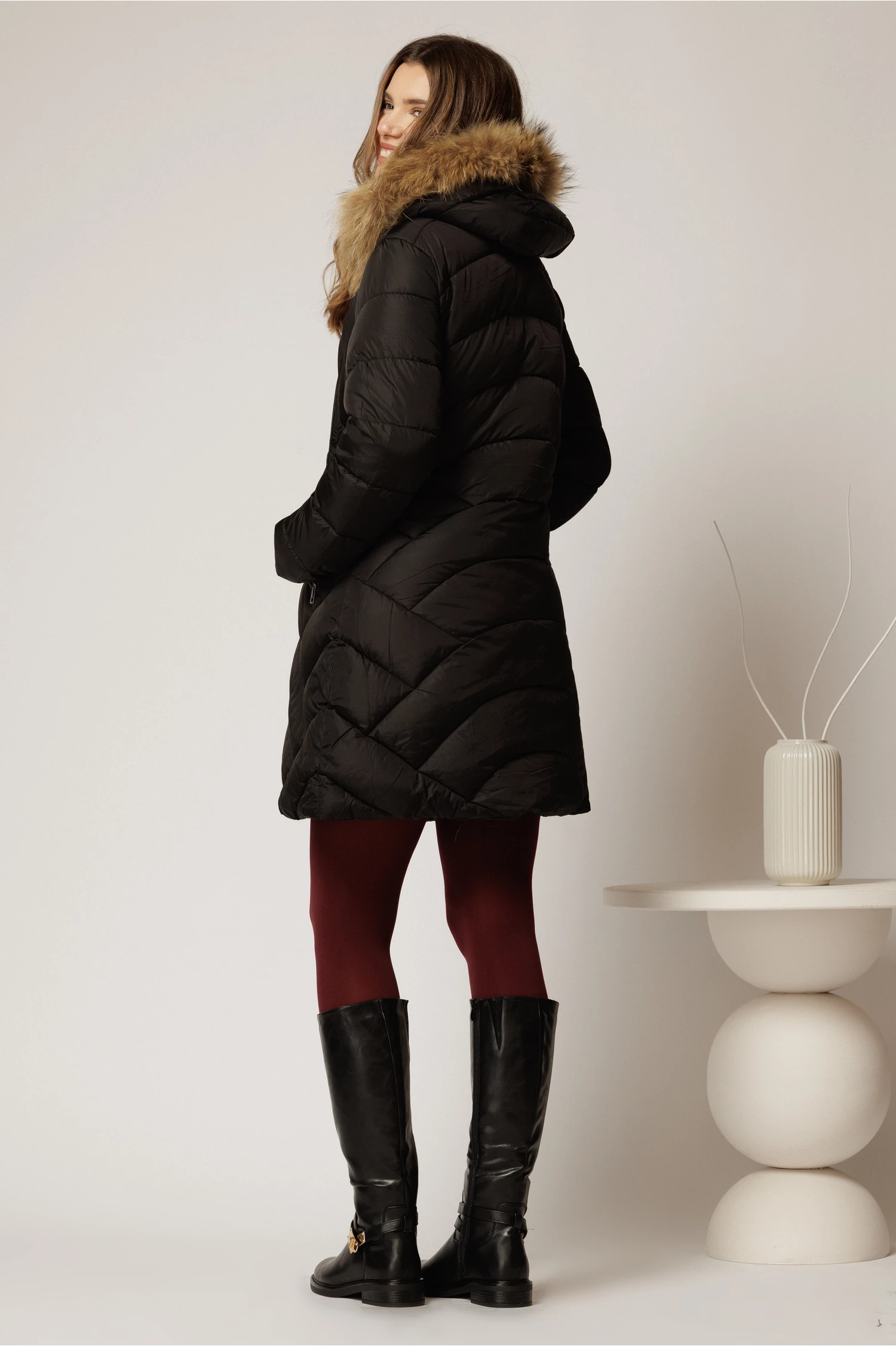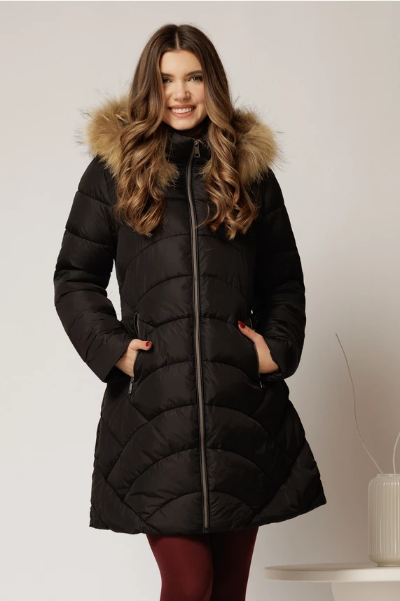 Geaca dama neagra cu croi drept si gluga detasabila