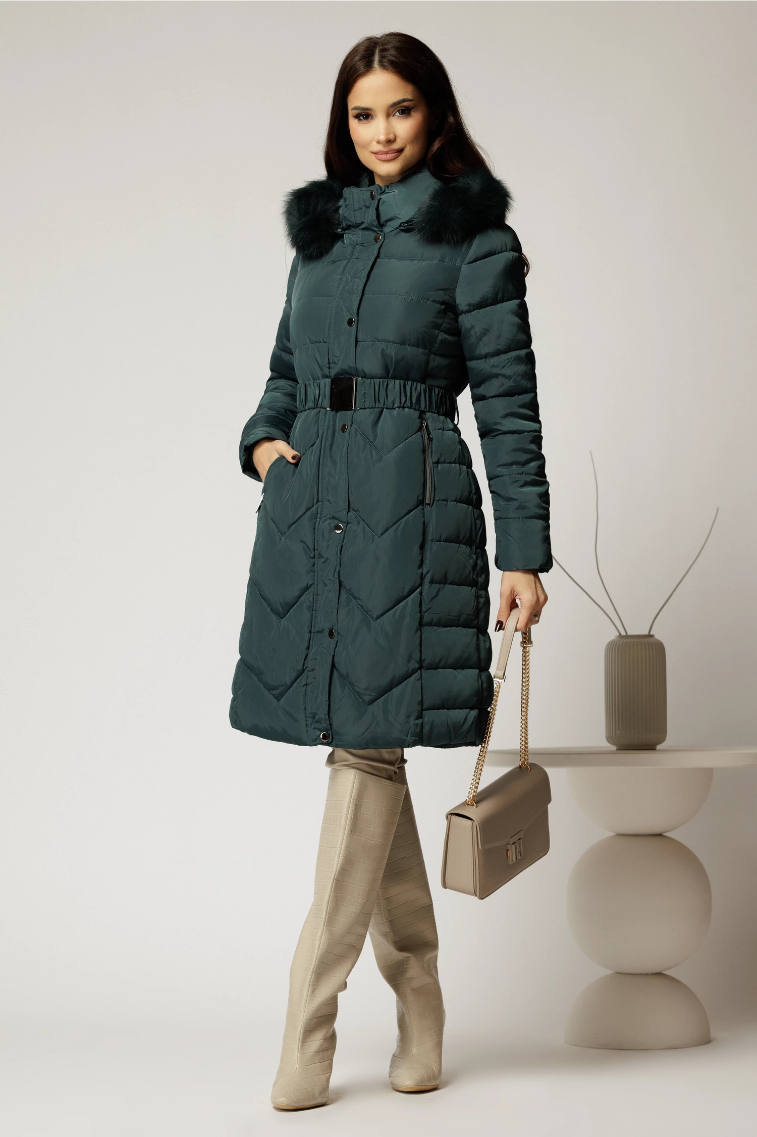 Geaca dama verde petrol cu cordon cu catarama in talie