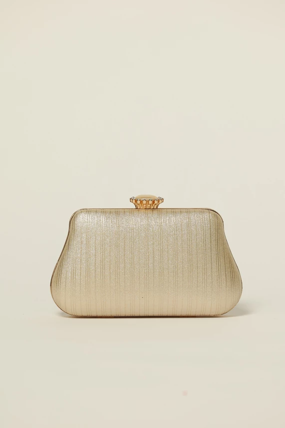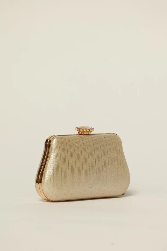 Clutch auriu cu inchidere metalica decorativa