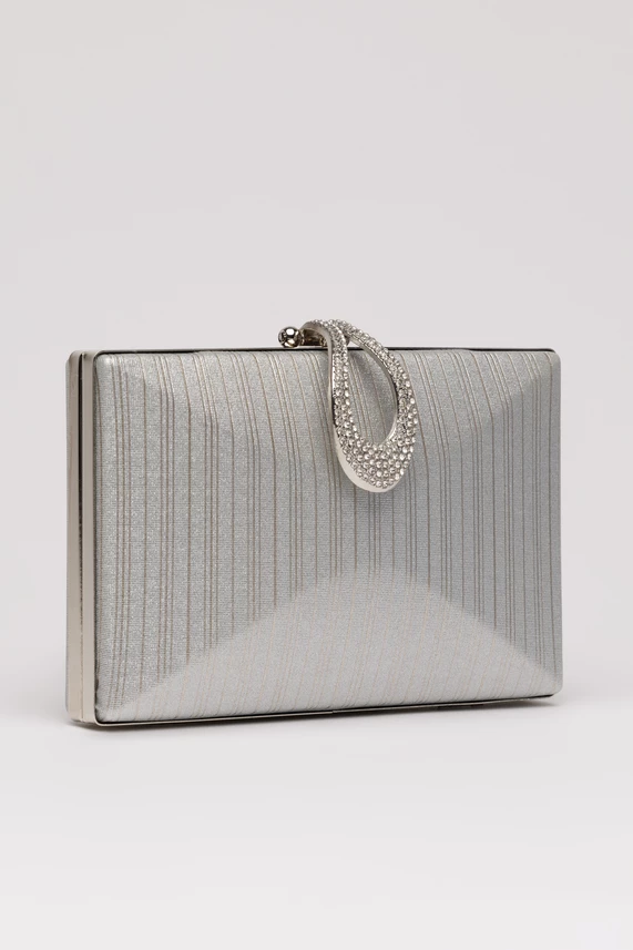 Clutch elegant argintiu cu design geometric