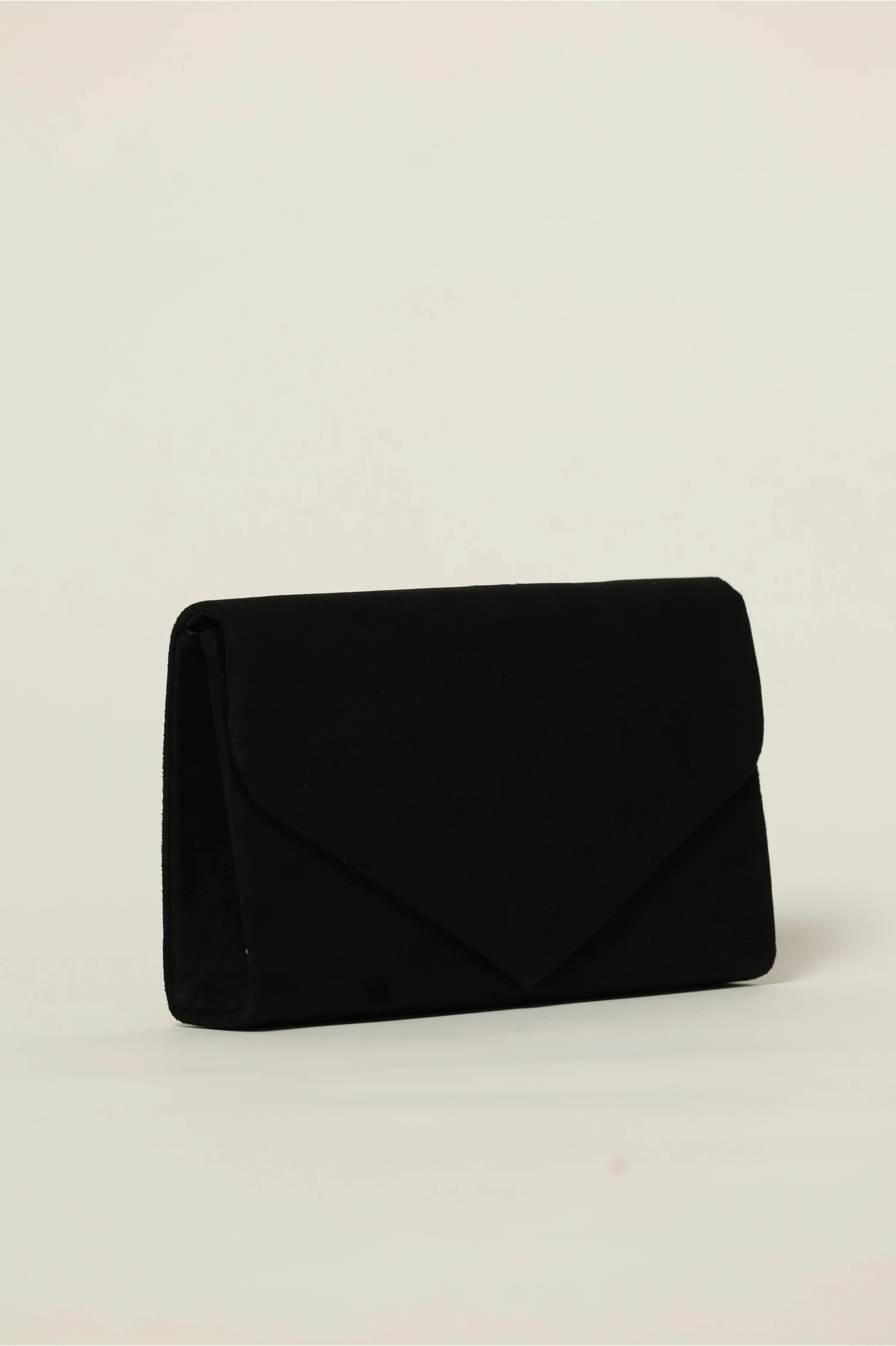 Clutch elegant din piele intoarsa ecologica. Se inchide prin capsa magnetica si se poate purta pe umar.