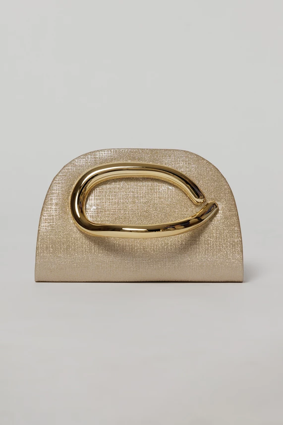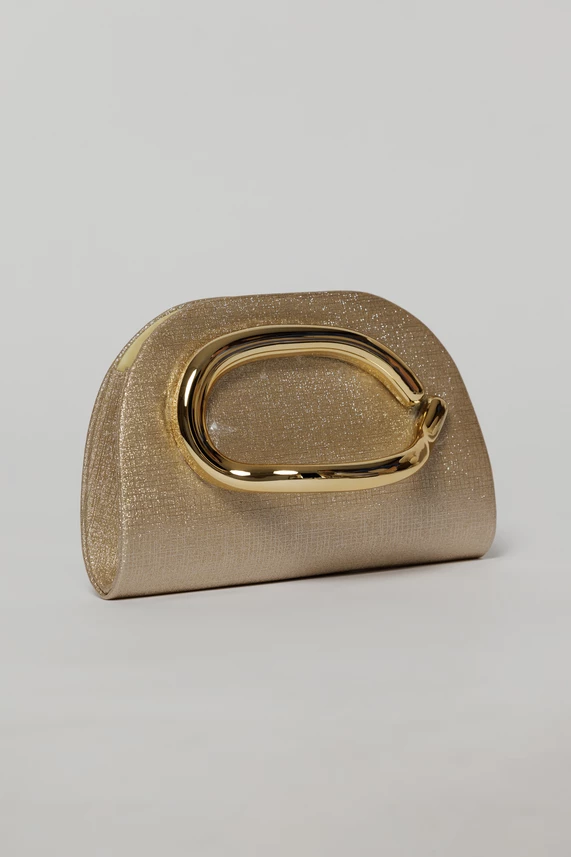 Clutch elegant din material cu textura fina si fir stralucitor. Are un compatiment, lant detasabil si inchidere metalica.