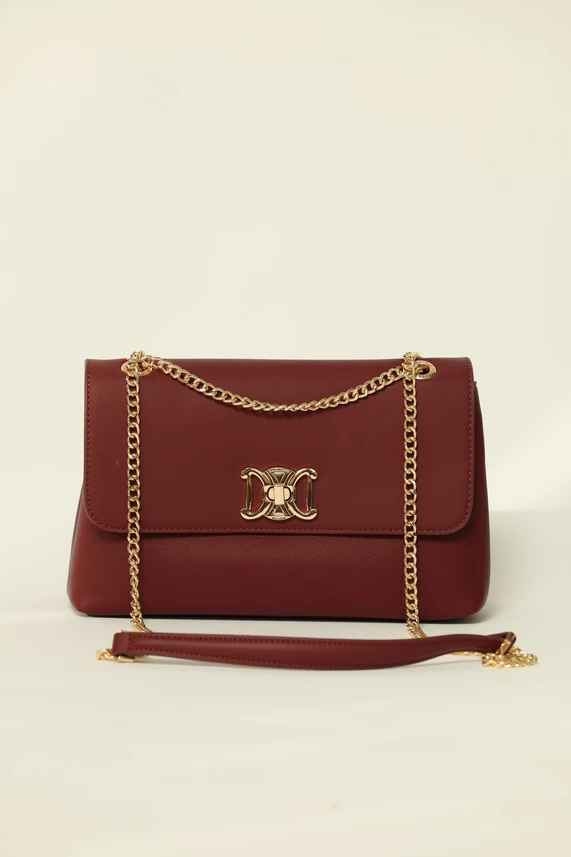 Geanta bordo eleganta cu detalii aurii