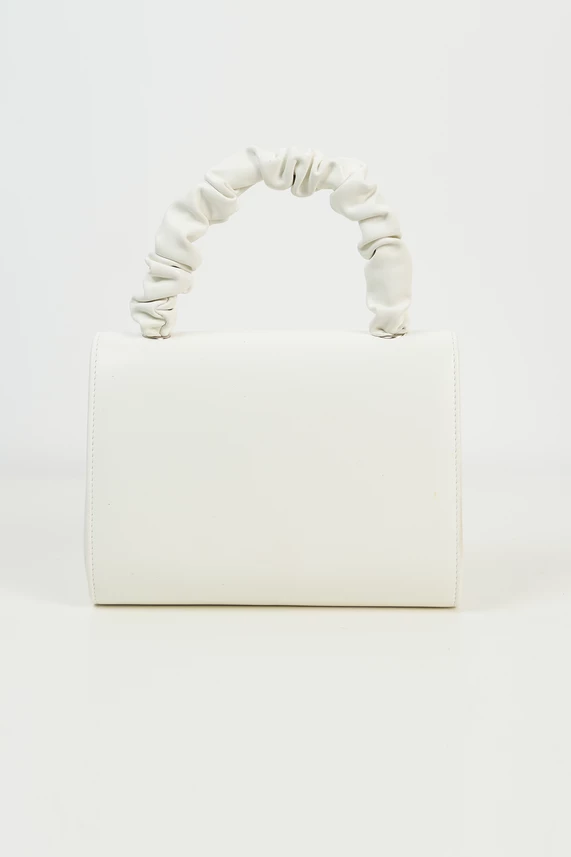 Geanta mica cu maner rotund incretit. Are un compartiment, lant detasabil si inchidere cu clapeta si capsa.