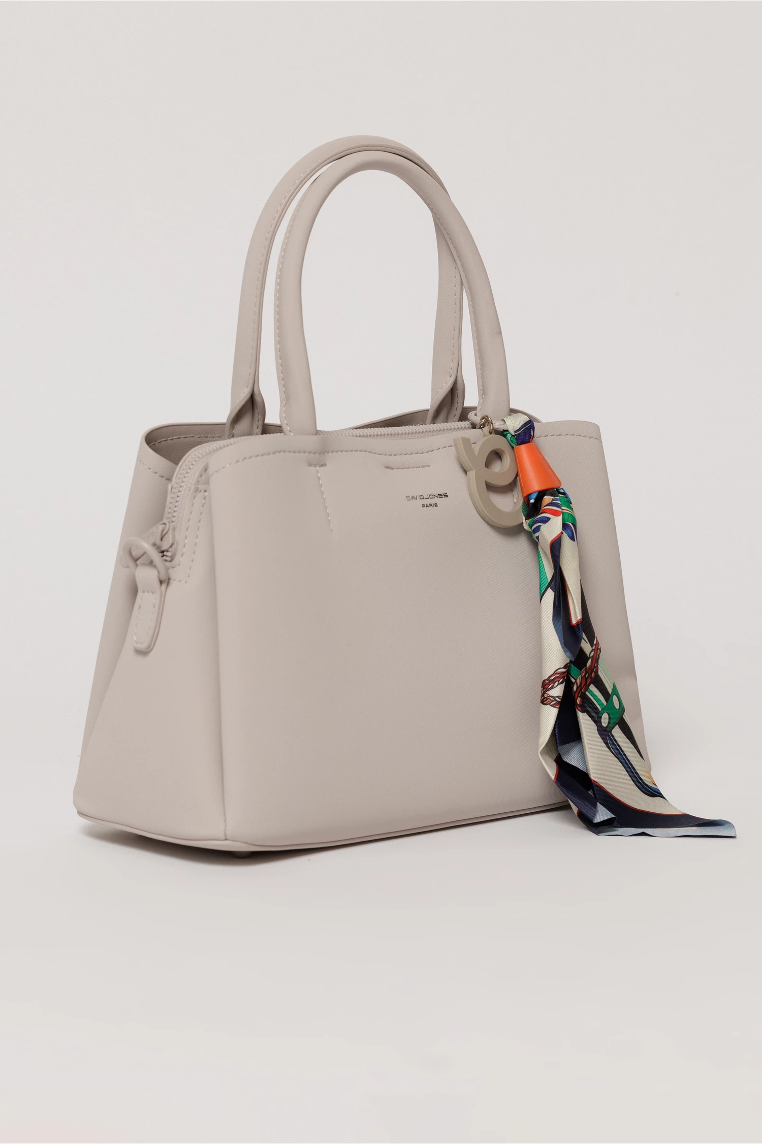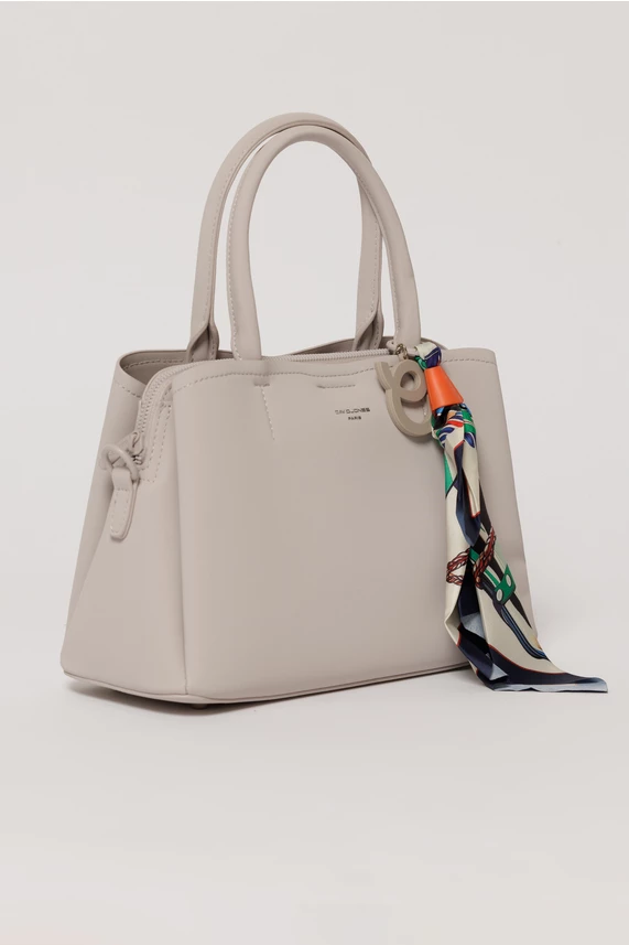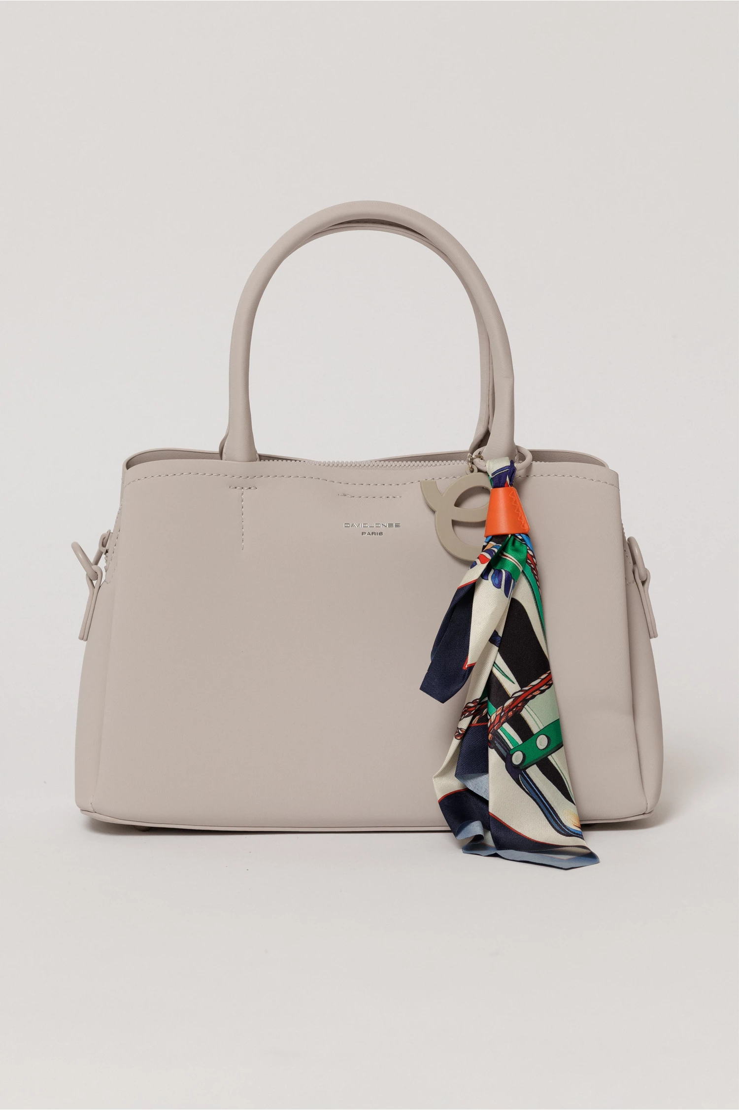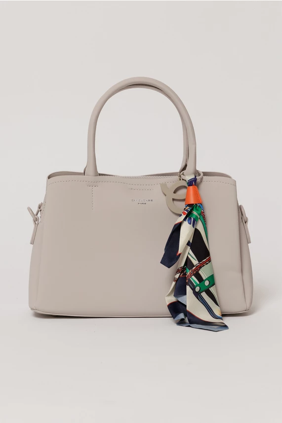 Geanta office eleganta cu esarfa decorativa multicolora. Are un design minimalist, dar functional, cu compartiment principal generos si doua buzunare interioare pentru organizare usoara.
