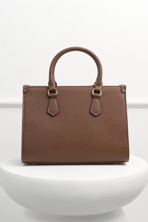 Geanta de zi cu stil office, realizata din piele ecologica usor texturata, cu maner dublu si curea lunga detasabila. Are un aspect profesional si poate fi purtata la birou sau la intalniri importante.