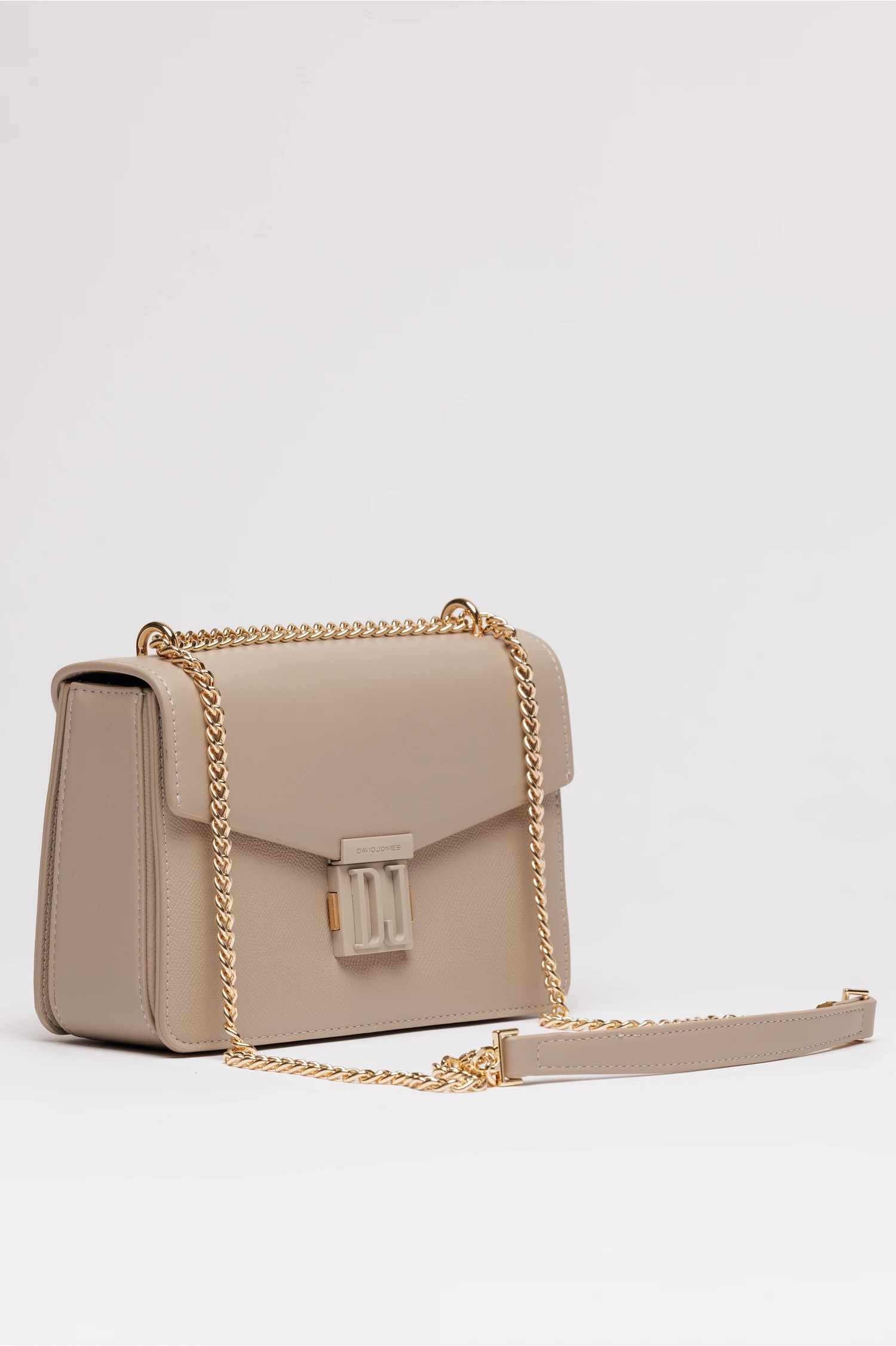 Geanta mica cu lant auriu, ideala pentru purtarea de zi cu zi. Se poate purta pe umar sau crossbody, are design simplu,un compartiment principal si doua interioare laterale.