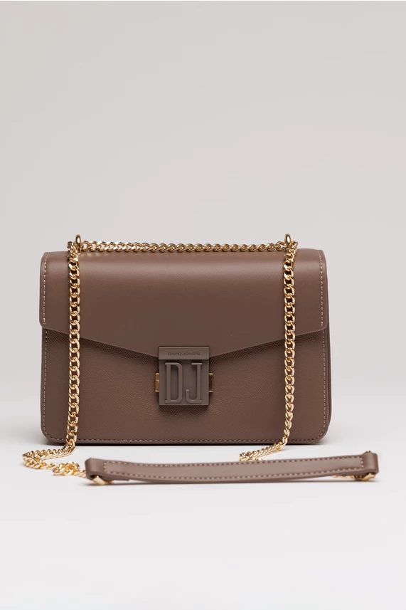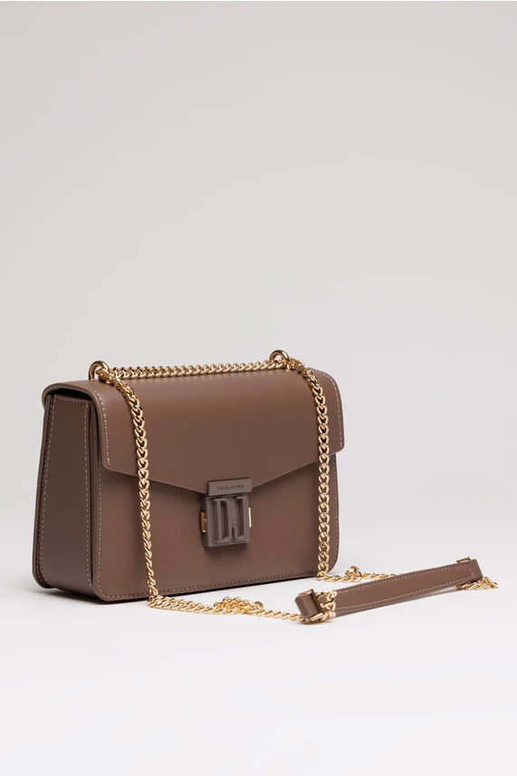 Geanta mica maro din piele ecologica cu lant auriu