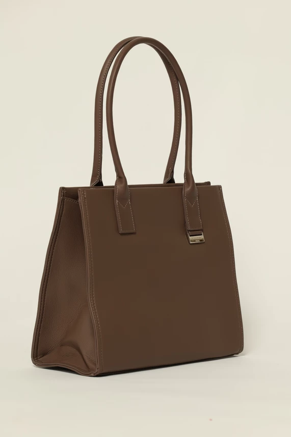 Geanta taupe office cu detaliu argintiu