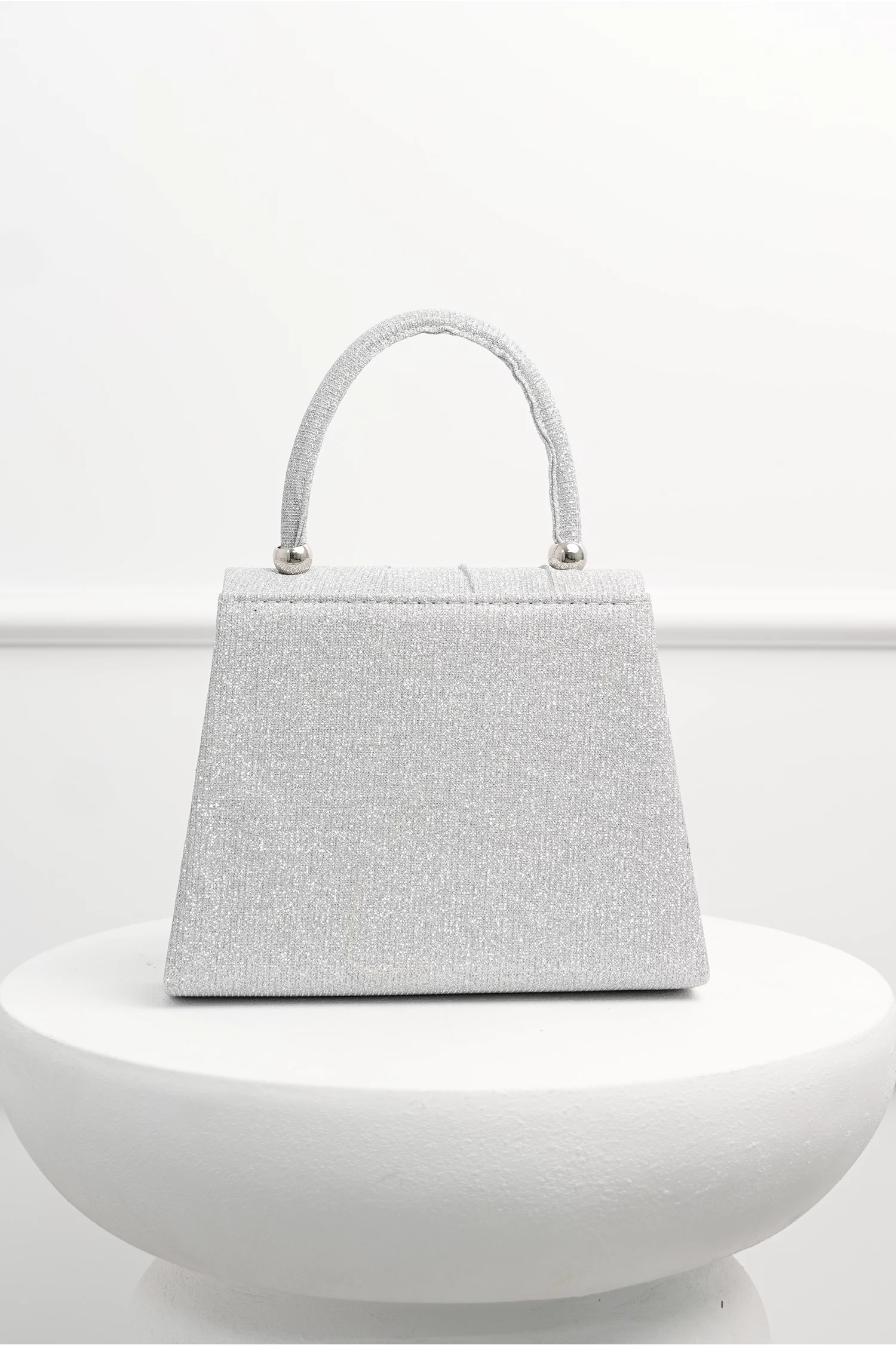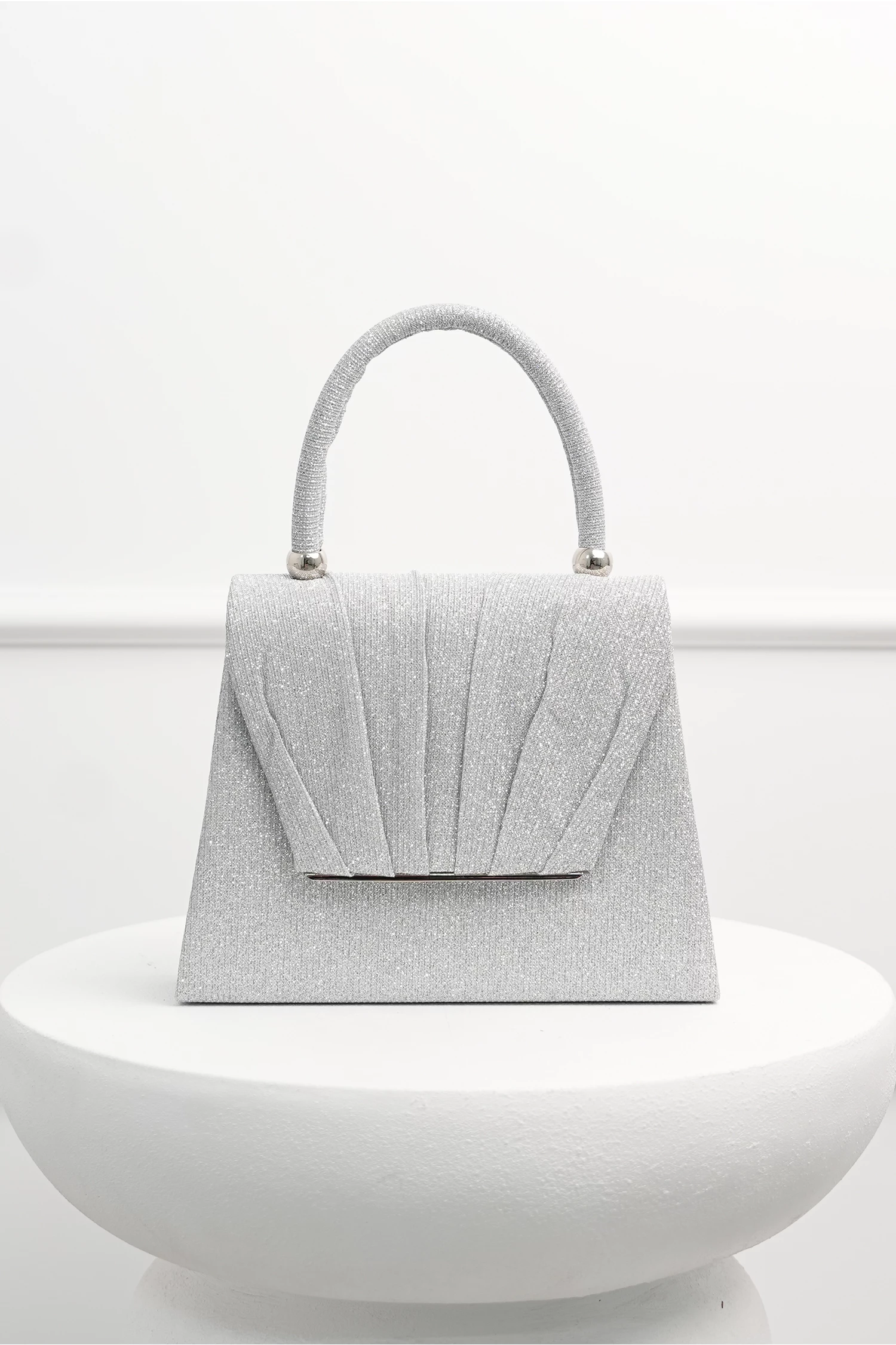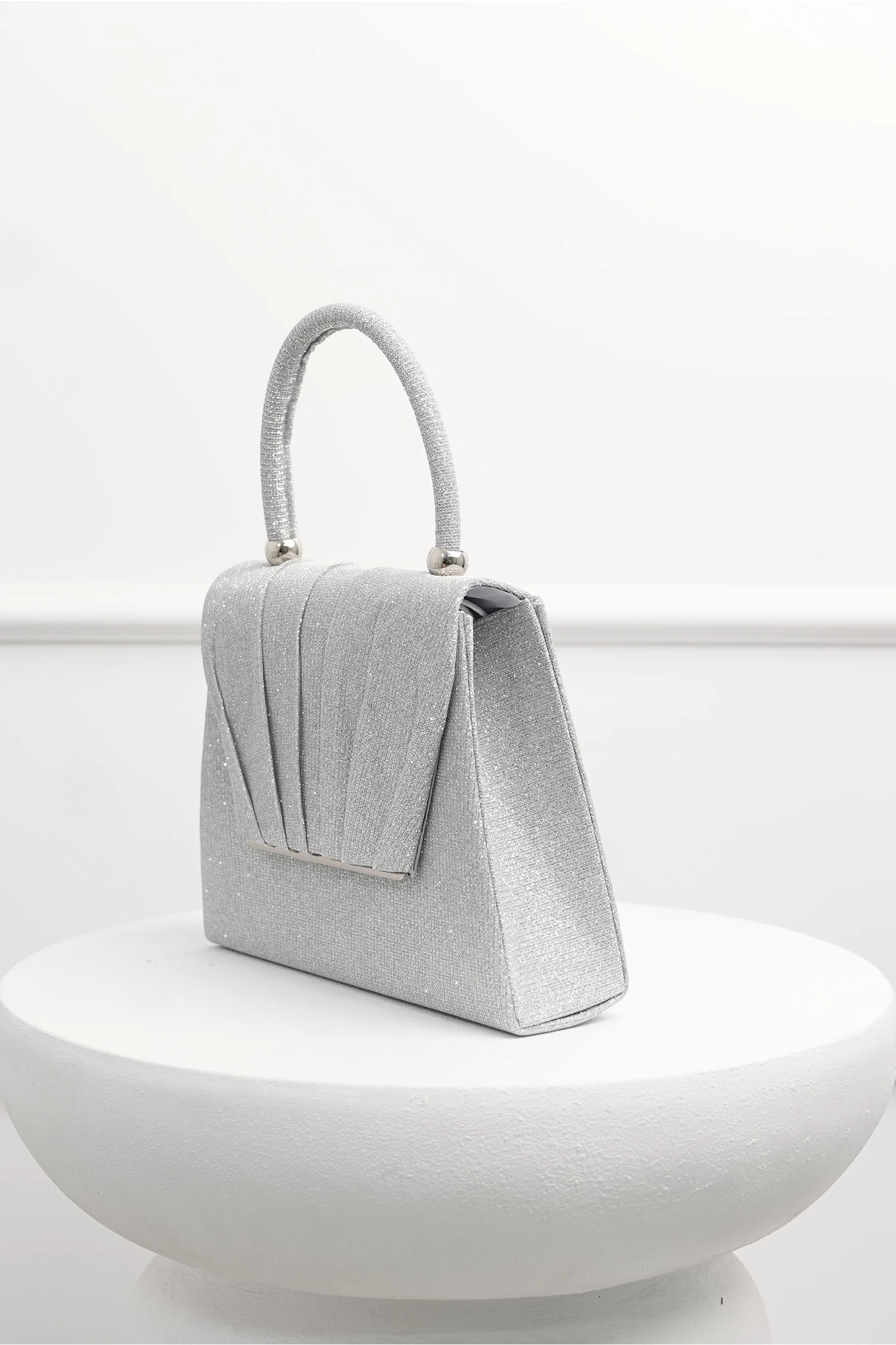 Gentuta argintie din glitter cu detalii plisate si maner rotund