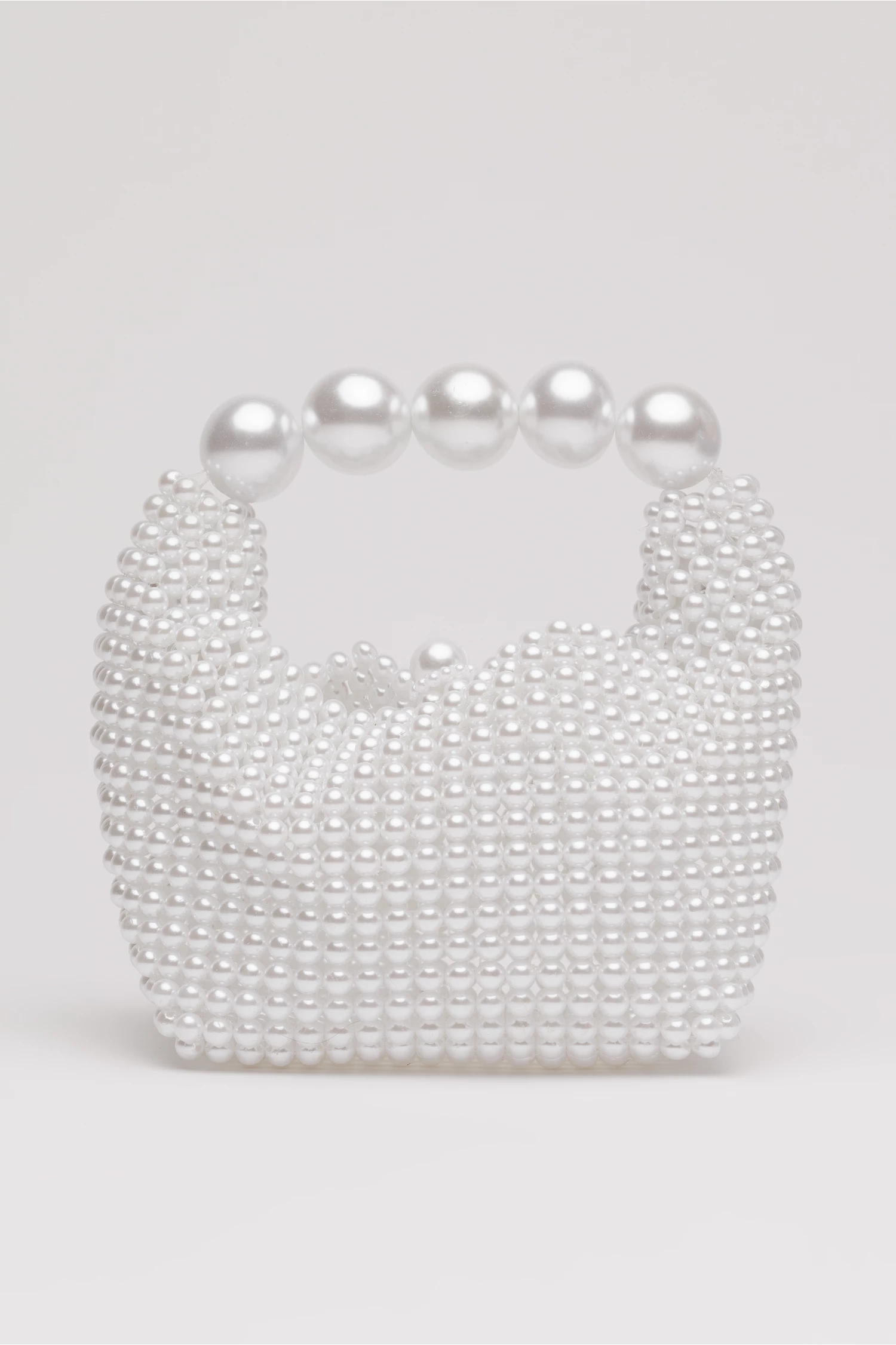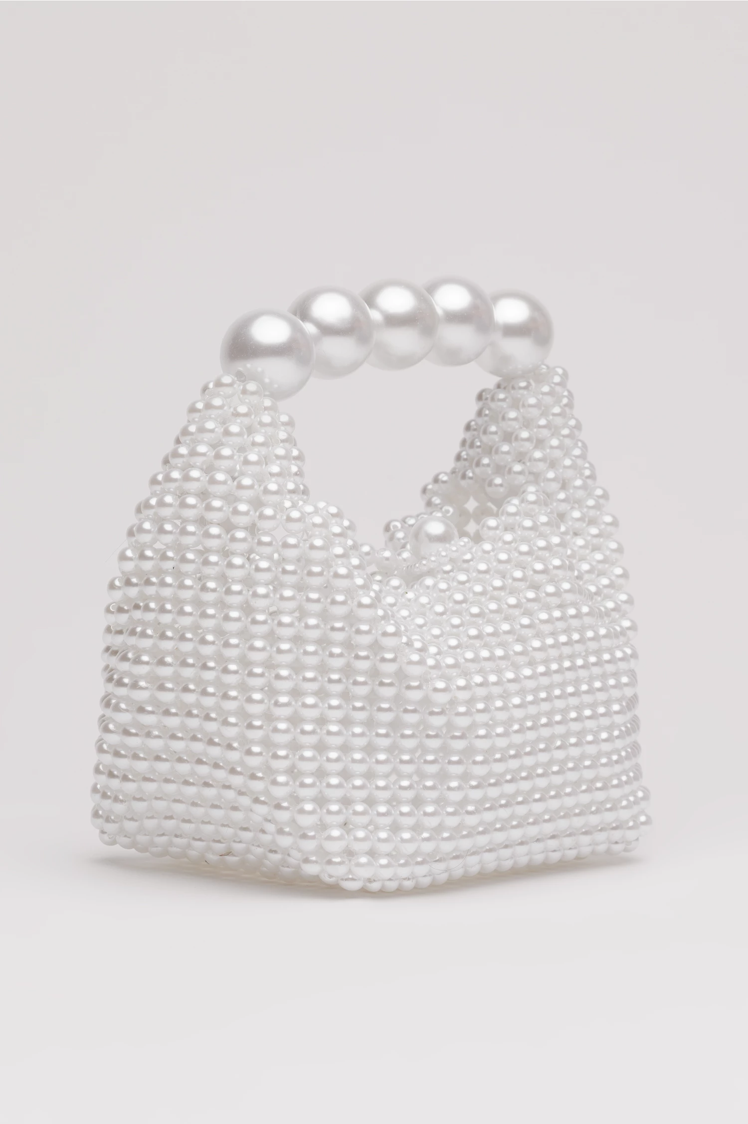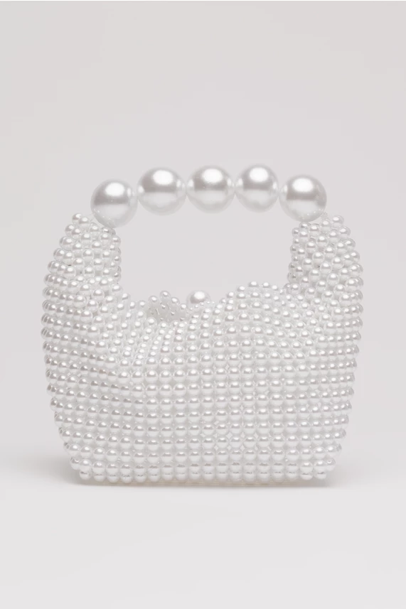 Geanta mica eleganta cu maner scurt din margele mari perlate. Interior simplu, fara compartimente vizibile.