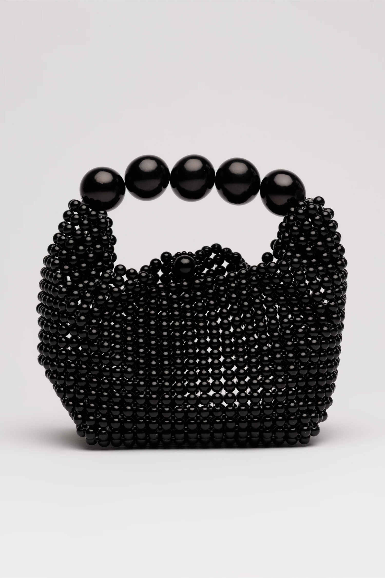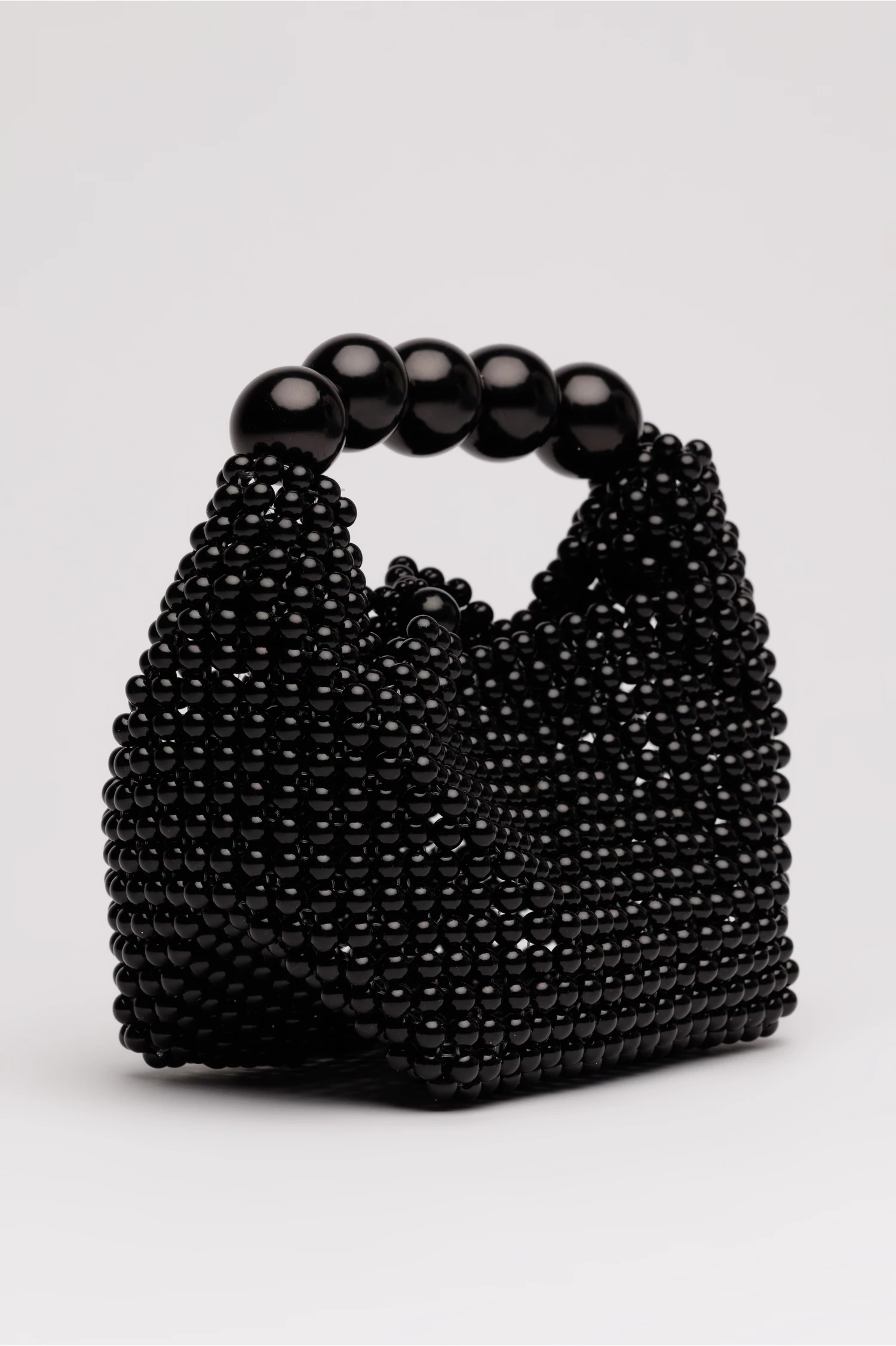 Geanta mica eleganta cu maner scurt din margele mari perlate. Interior simplu, fara compartimente vizibile.