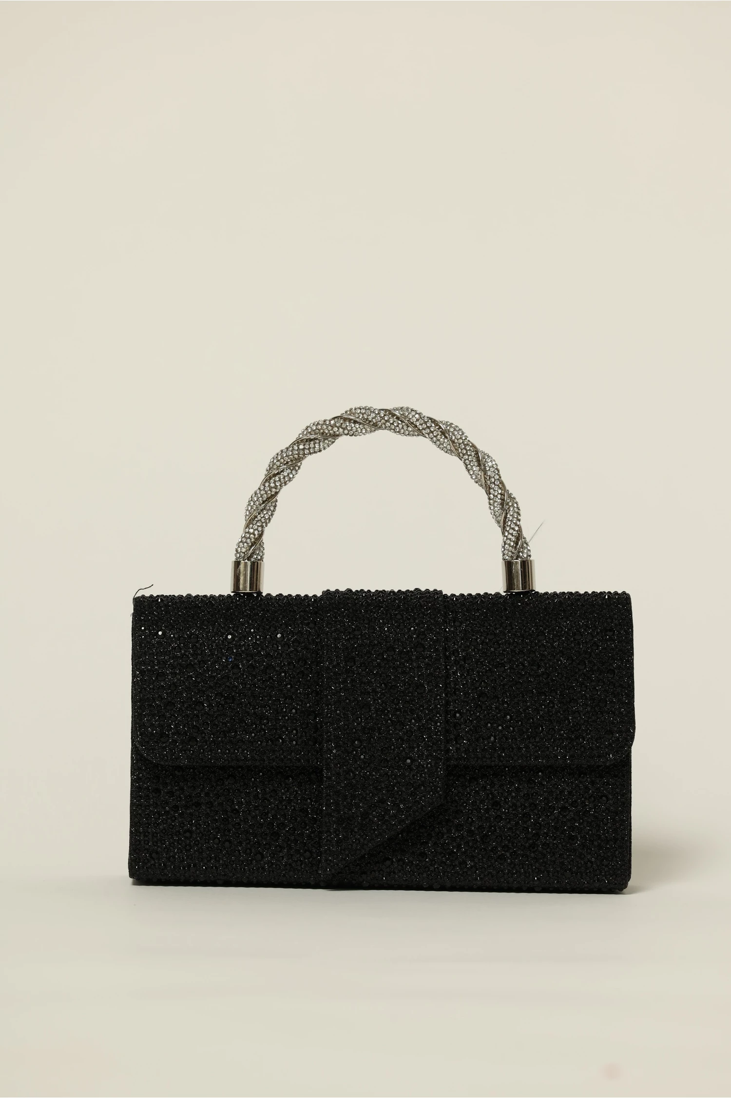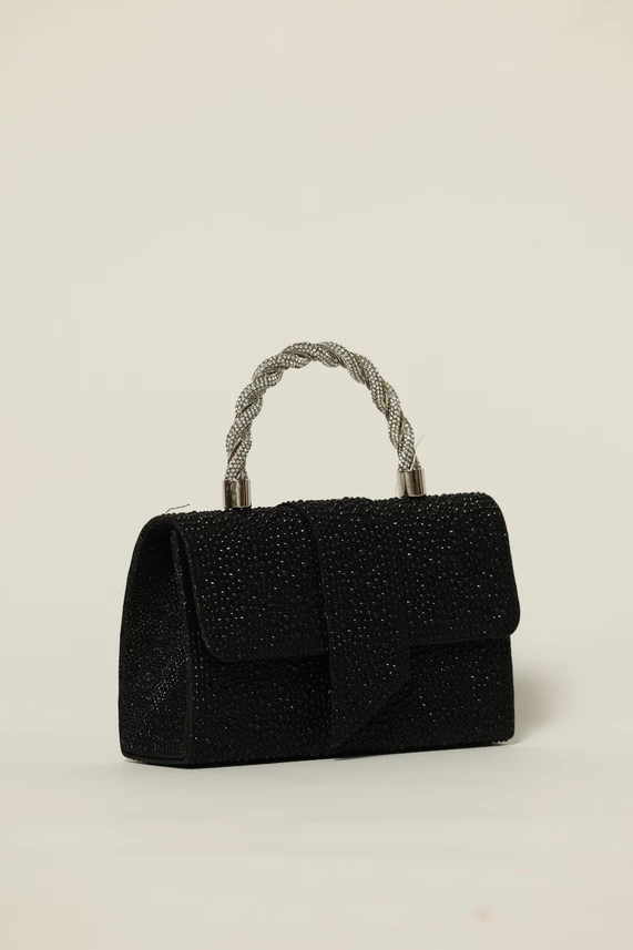 Gentuta eleganta tip clutch din material cu glitter si pietre stralucitoare. Are forma rigida, maner rotund, lant detasabil si inchidere cu capsa magnetica. Ideala pentru tinute elegante sau evenimente speciale.