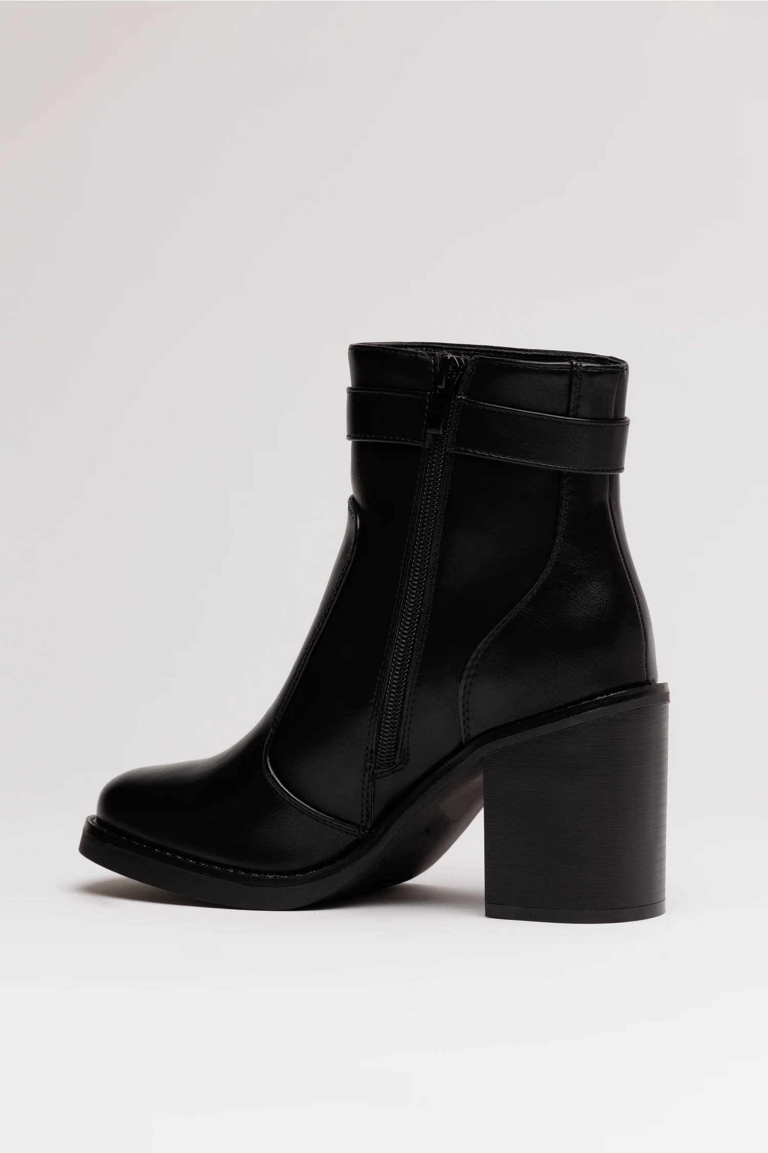 Botine negre din piele ecologica de dama cu toc patrat si catarama