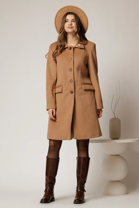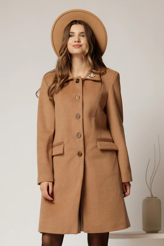 Palton Amira maro cu brosa pe guler