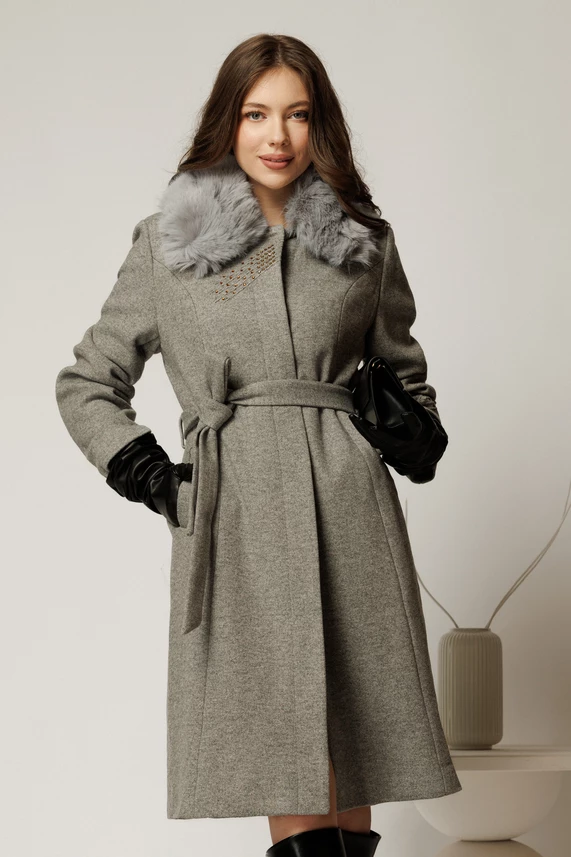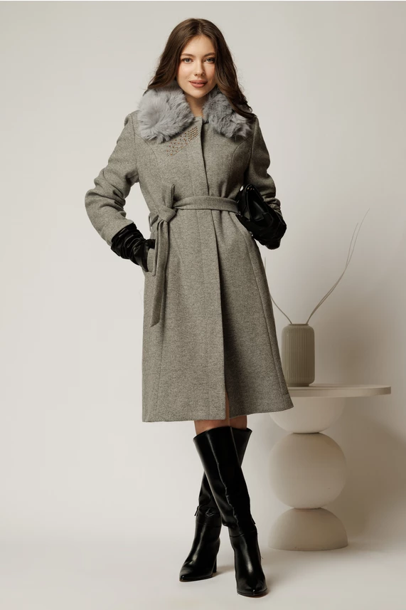 Este un elegant palton midi, cu blanita la guler si strassuri pe maneca si la guler. Are cordon in talie si inchidere cu nasturi ascunsi.