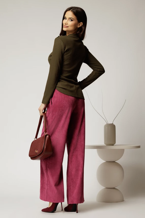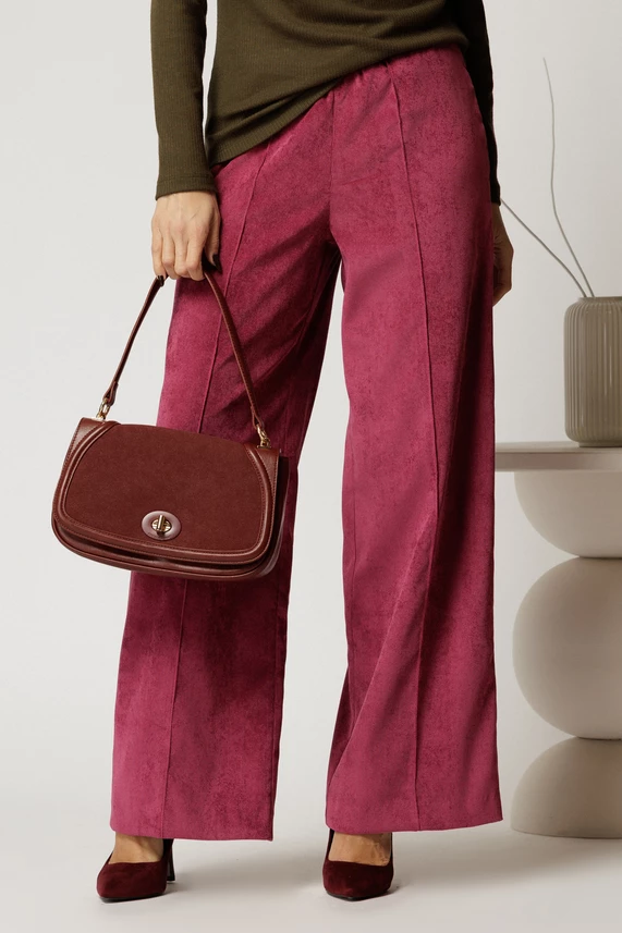 Pantalon DY Fashion lejer din velur magenta cu buzunare