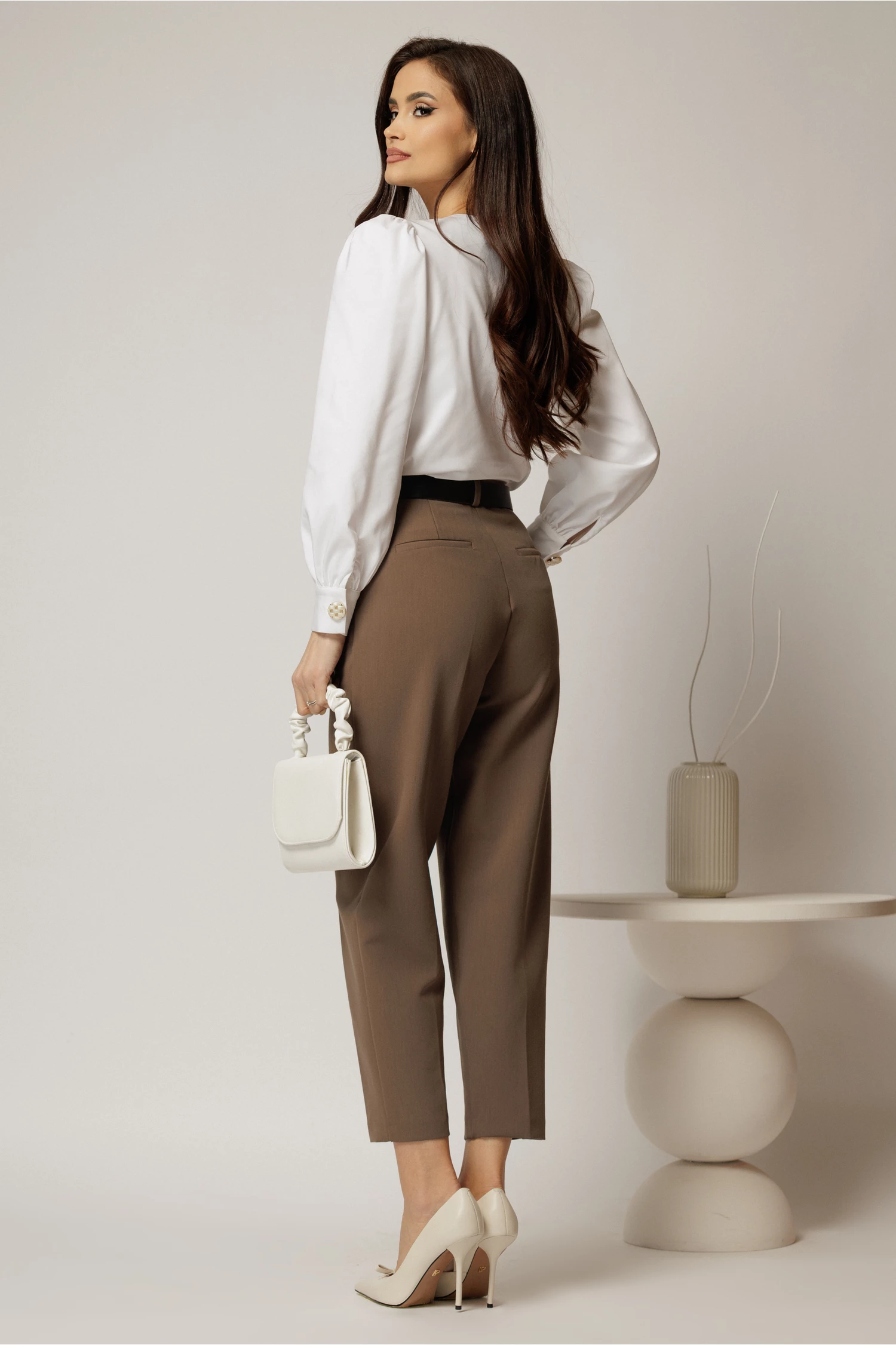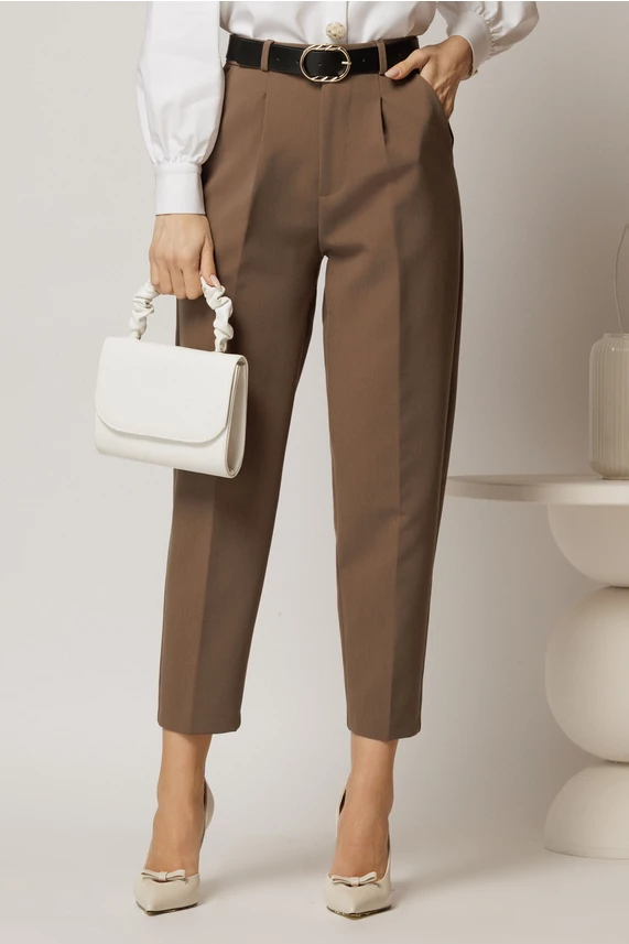 Pantaloni dama bej inchis cu croi pana si buzunare
