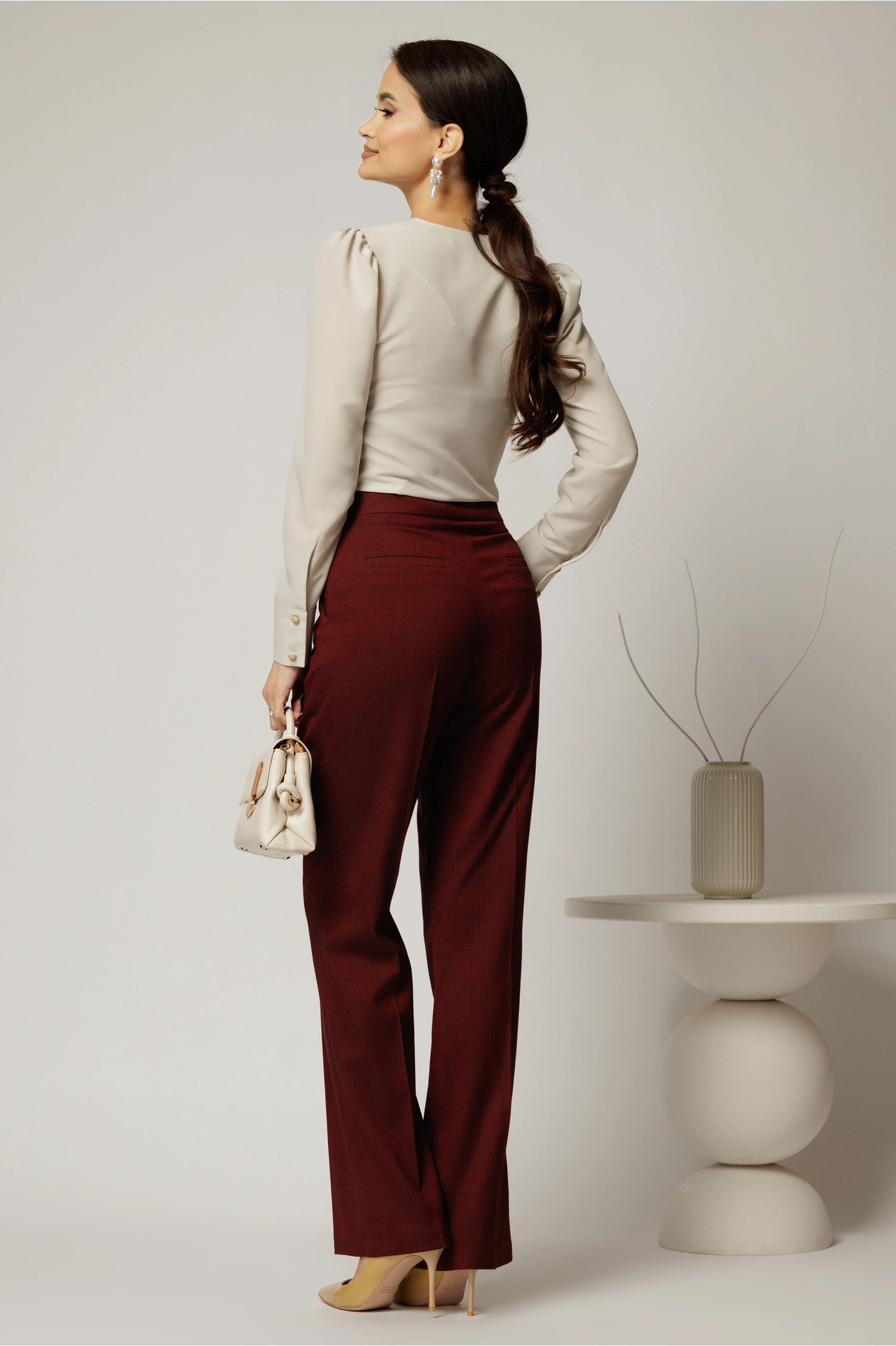 Pantaloni dama grena office croi drept