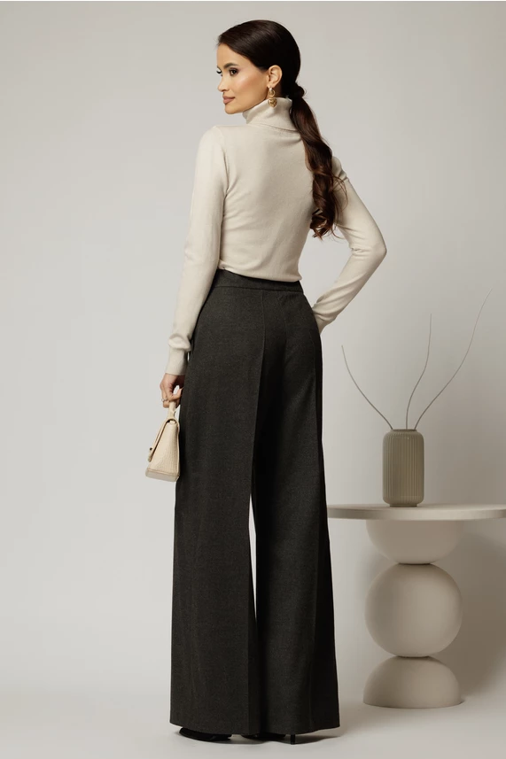 Simte-te comod in aceasta pereche de pantaloni gri, lejeri, cu un croi pallazzo care avantajeaza orice silueta.