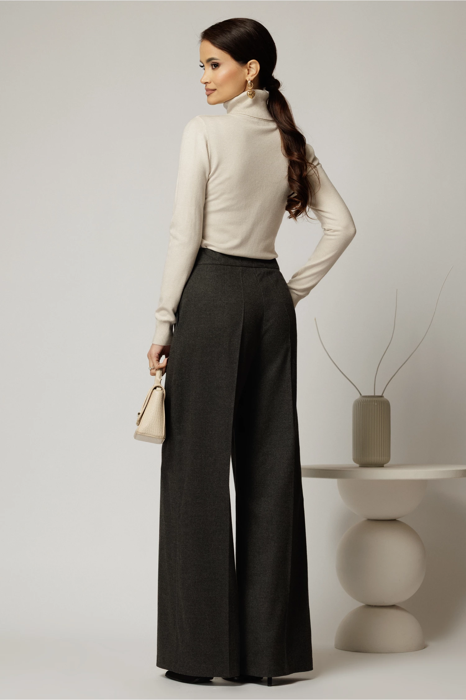 Pantaloni dama office casual gri evazati