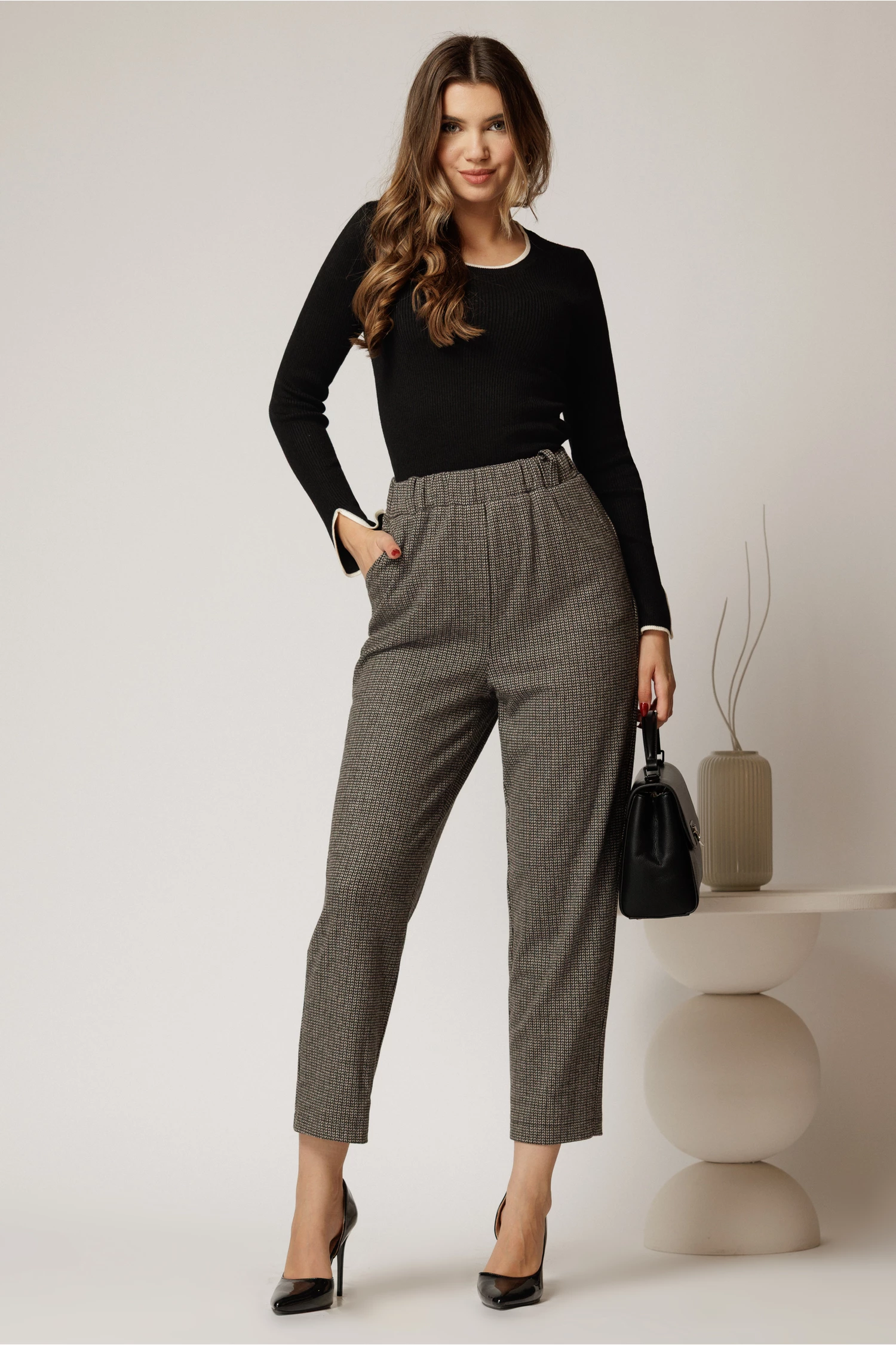 In tinutele tale de toamna iarna integreaza o pereche de pantaloni casual eleganti, pentru un plus de lejeritate. Pantalonii au un croi lejer si talia pe elastic.