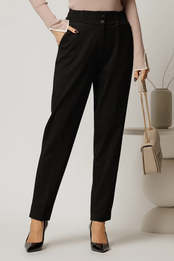 Pantaloni negri din stofa cu elastic pe talie
