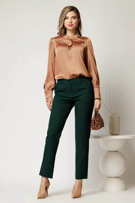 Pantaloni office verde inchis din stofa simpli. Au talie medie, buzunare functionale si croi conic.