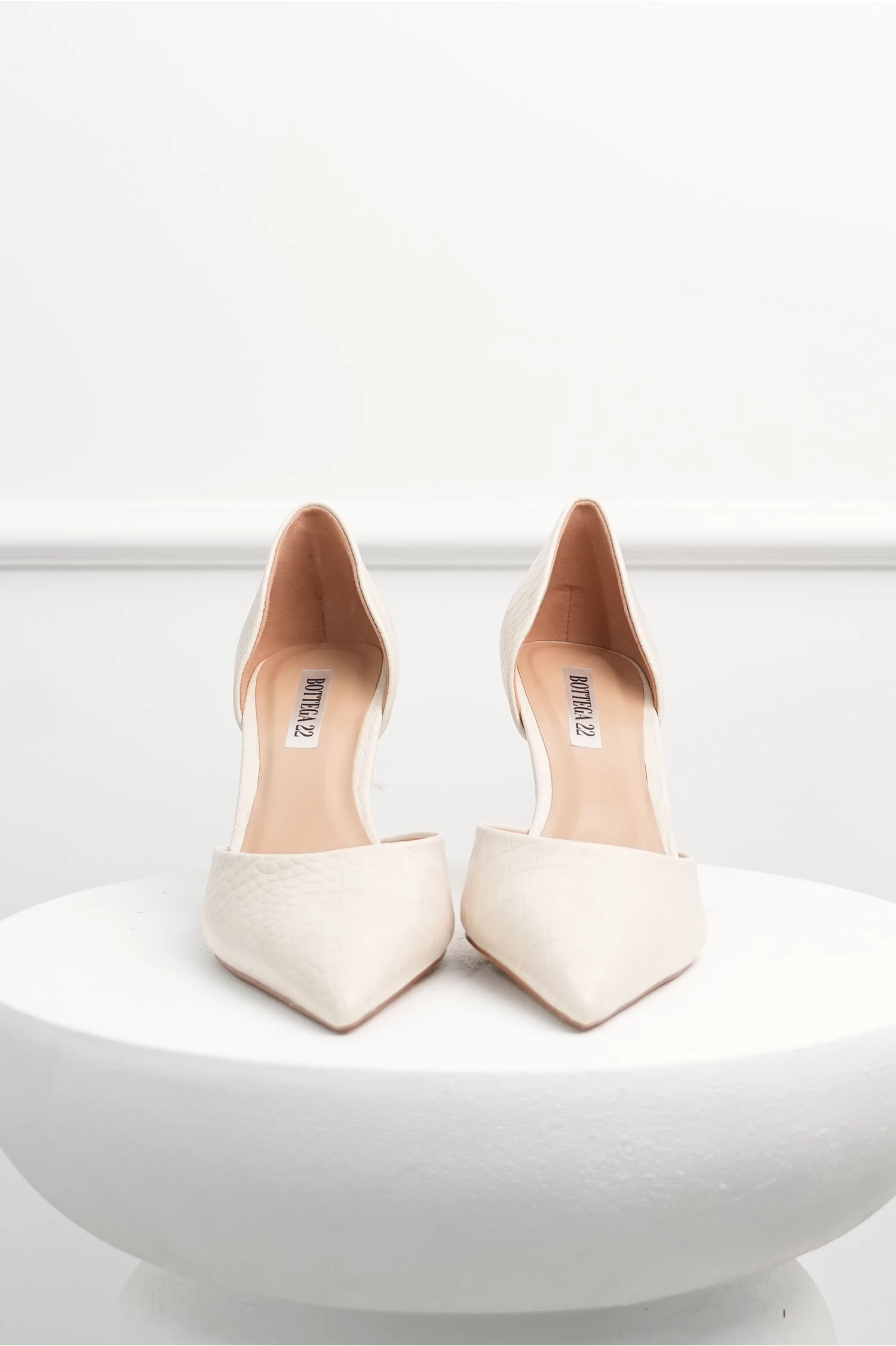 Pantofi bej eleganti din piele ecologica cu model snake